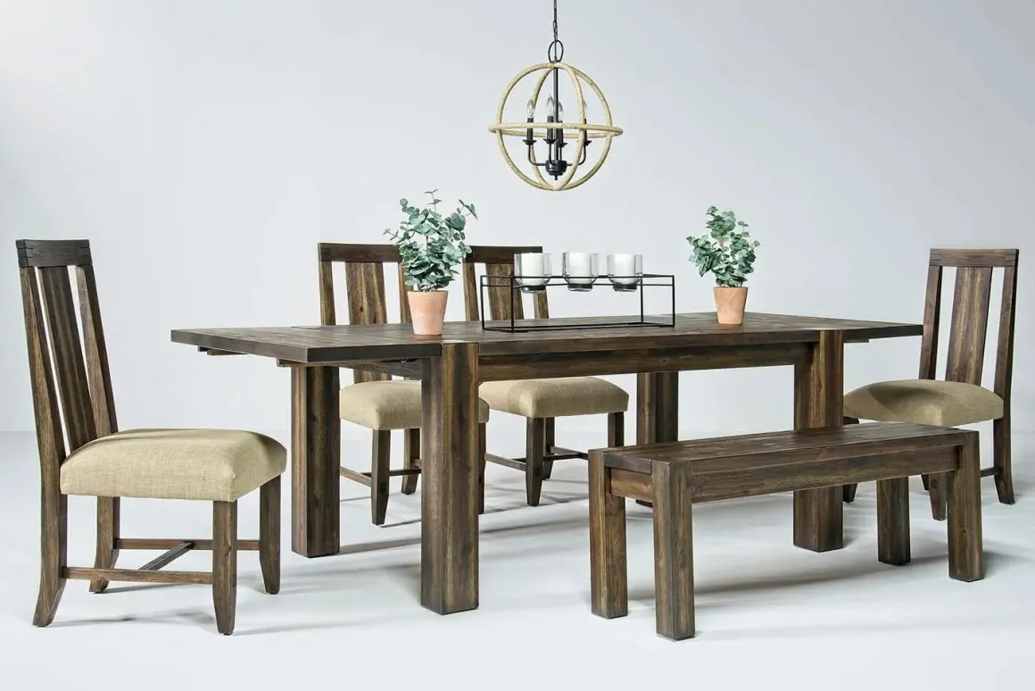 Give your casual dining space or the formal dining room a brand new look with the Meadow Extendable Dining Table, 4 Chairs & Bench in Brown. Crafted from durable, stylish acacia wood solids, this set is perfect for any room. Pair with traditional furnishings, update your space in a transitional style or bring a natural element to your modern decor. Outfit your whole dining room or mix and match your favorite pieces from the Meadow set with ease.