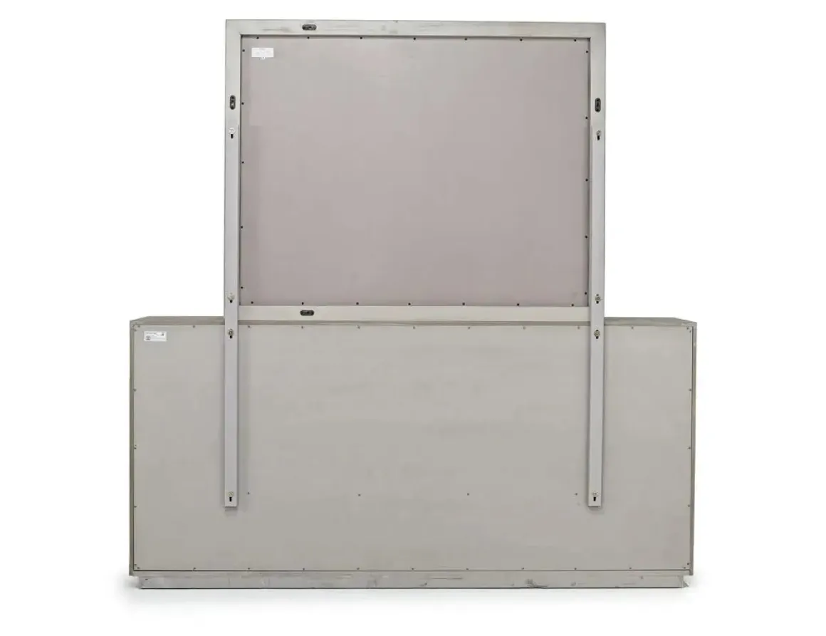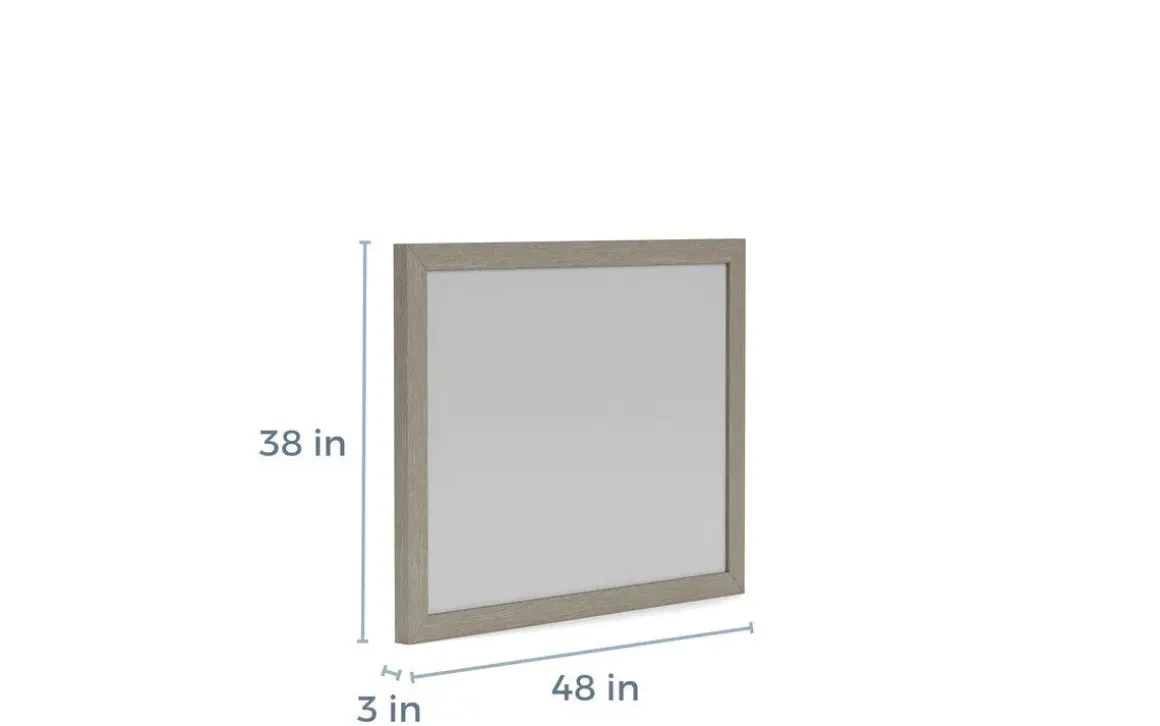 Dress for success and check your appearance in this Melbourne Mirror in Mineral gray. You’ll appreciate the sleek, clean lines and square corners. The Mineral gray color goes well with any design scheme or wall coverings. The overall look is minimalist, mellow and relaxing. If you’re trying to design a clutter-free bedroom, this piece is a must-have This mirror attaches to its coordinating dresser. Additional hardware may be needed for wall installation. Product Details: • Mineral gray color is a mild neutral hue • Durable and built to last • Easy to clean, just wipe away dust with a soft cloth and clean the mirror with glass cleaner occasionally Finish may vary.