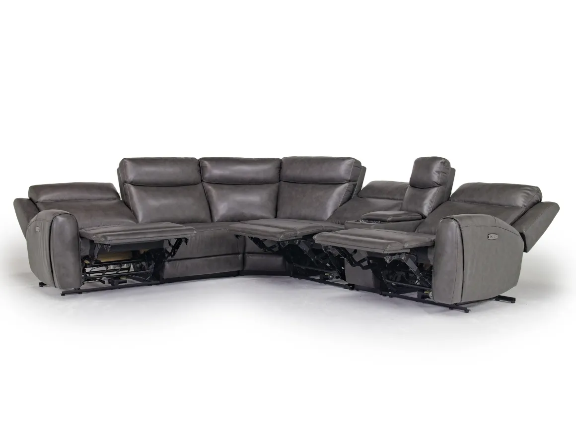 Mia 6 Piece 2 Power Sectional W/ 2 Power Armless Recliner In Gray