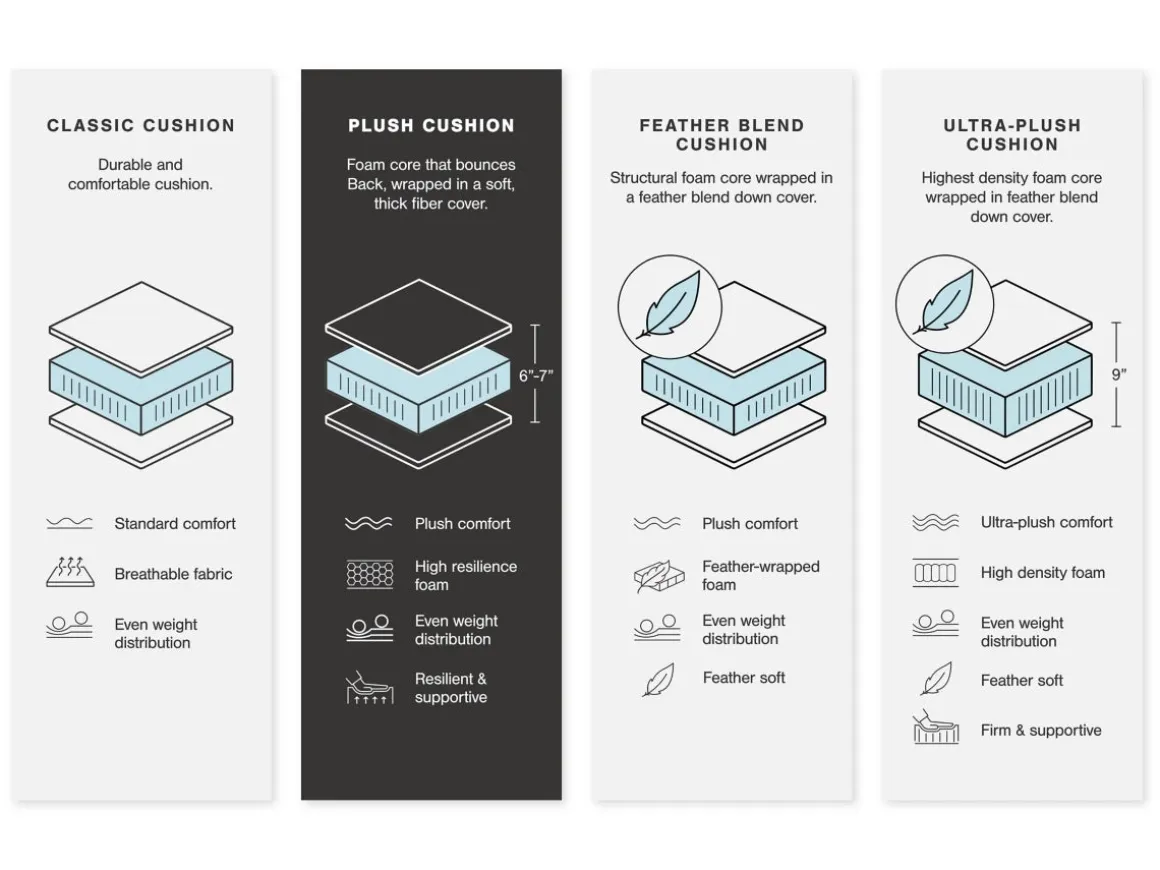 - High-resiliency foam cushions wrapped in poly fiber