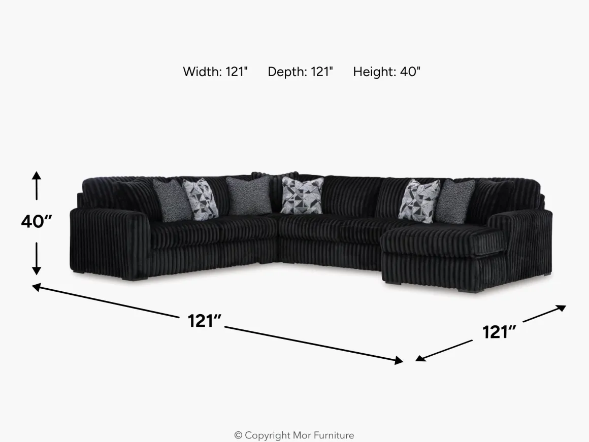 Wrapped in luxuriously soft jumbo corduroy, the Midnight-Madness sectional takes cozy and inviting to a higher level. This sumptuous piece is perfect for unwinding after a long day, with exceptionally textured cushions that deliver pure indulgence. Now all you have to do is kick back, sink in and relax.
