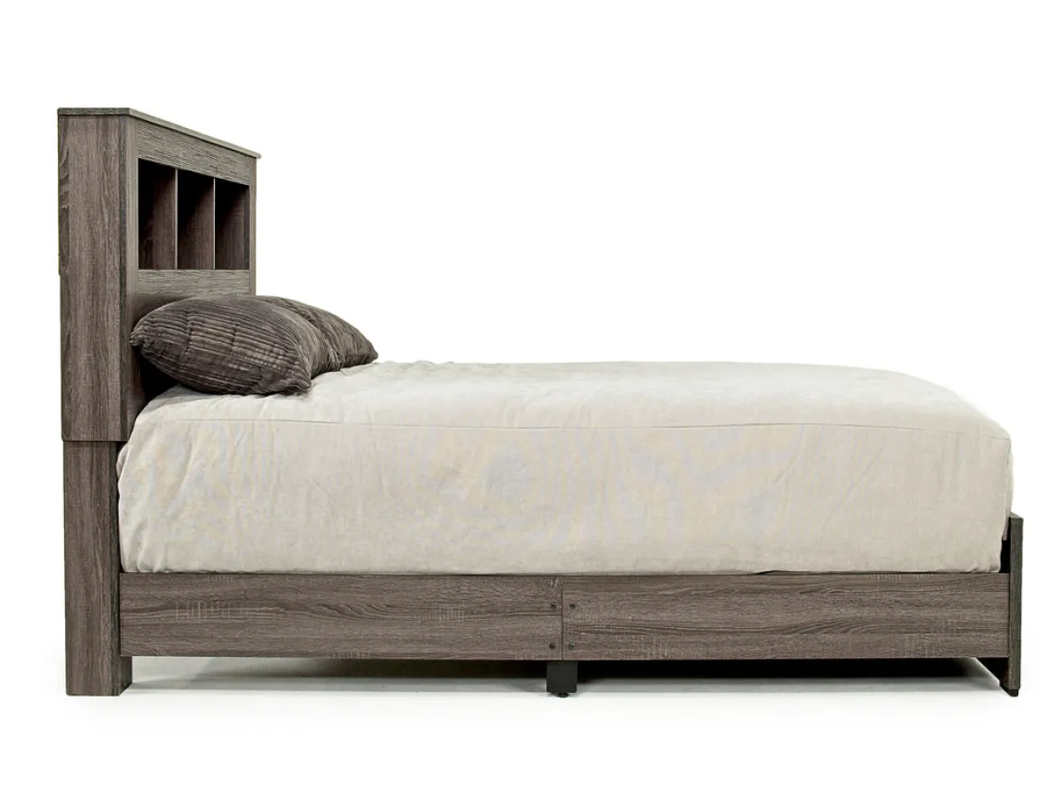 Exuding rustic beauty this Naialyn Bookcase Bed w/ Storage in Gray, Full brings an on-trend, neutral-color update to your master bedroom, guest room or a child’s bedroom. The farmhouse-flair gray wood-grain blends well with many decor styles and its headboard bookcase features open cubbies to display or store books, personal touches and more