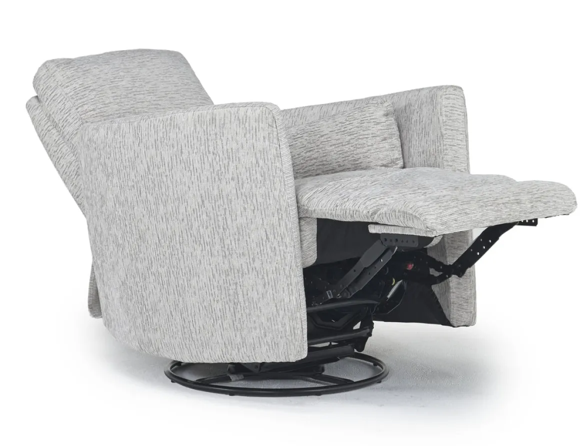 Swivel, glide, recline, and relax with the Opal Swivel Gliding Recliner in Dove. This charming gliding recliner offers the ultimate in comfort. With its modern-day appearance and easy mechanical recline, you’ll be ready to put your feet up and relax at the end of every long day. Lose yourself in style and relaxation.