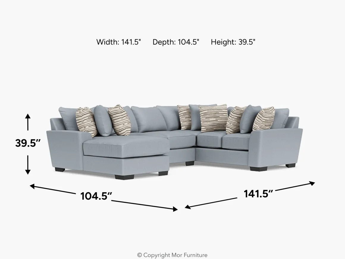 Experience the benefits of a chaise and loveseat in a modern and stylish configuration. The Oracle Tux Loveseat Chaise Sectional, Left Facing, Down includes large down-filled cushions supported by adaptive springs. It is fully upholstered in microfiber chenille fabric and includes several throw pillows in complementary designs.
