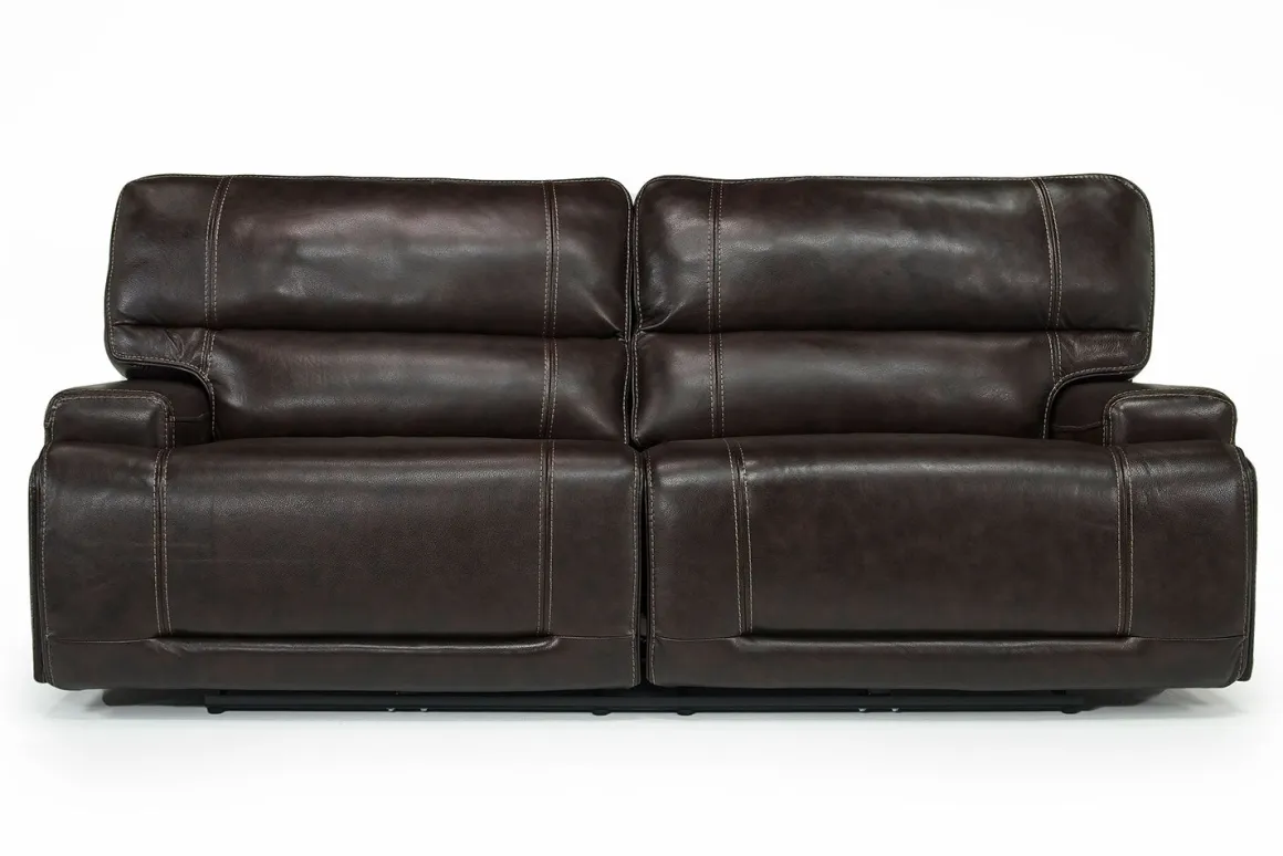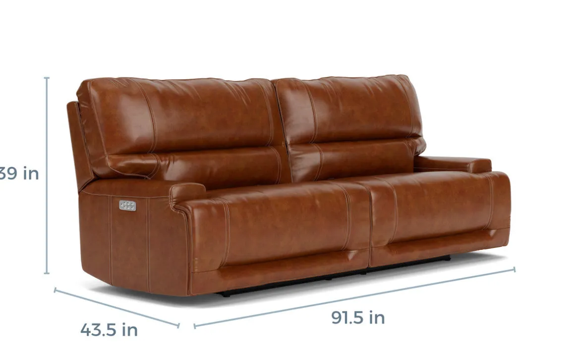 The Oslo 3 Power Sofa in Brown Leather offers luxurious comfort with 100% top-grain leather seating, dual-reclining seats, power headrests, and power lumbar support. Part of the modular, customizable Oslo Sectional.