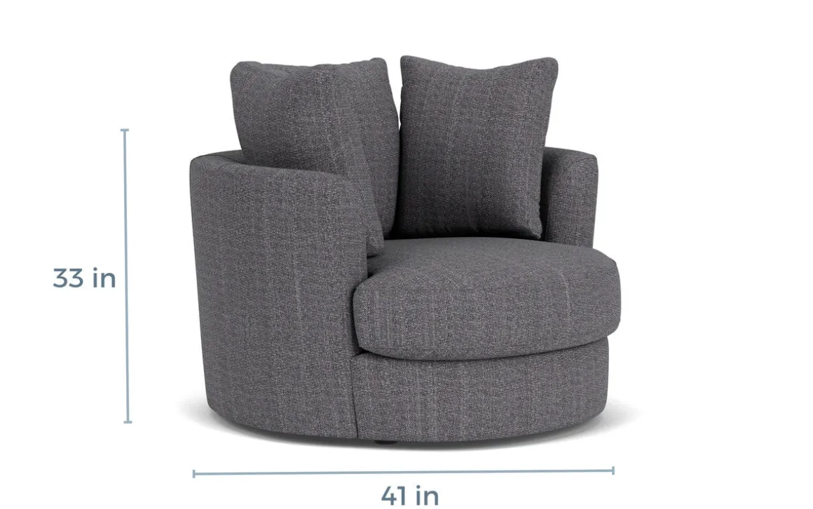 Every home needs a cozy chair (or two) like the Pasadena Accent Chair in Brimfield Denim. Made with just the kind of causal style that encourages relaxation, this chair is perfect for curling up in with the remote control. A denim finish is unpretentious and will complement any accent color from bold to monochrome. There’s nothing quite like cuddling in to your favorite chair at the end of the day. You know you deserve it! Product Details: • Foam seat cushions won’t lose shape • Durable fabric can stand up to years of regular use • Finish the room with other coordinating pieces from the Pasadena collection