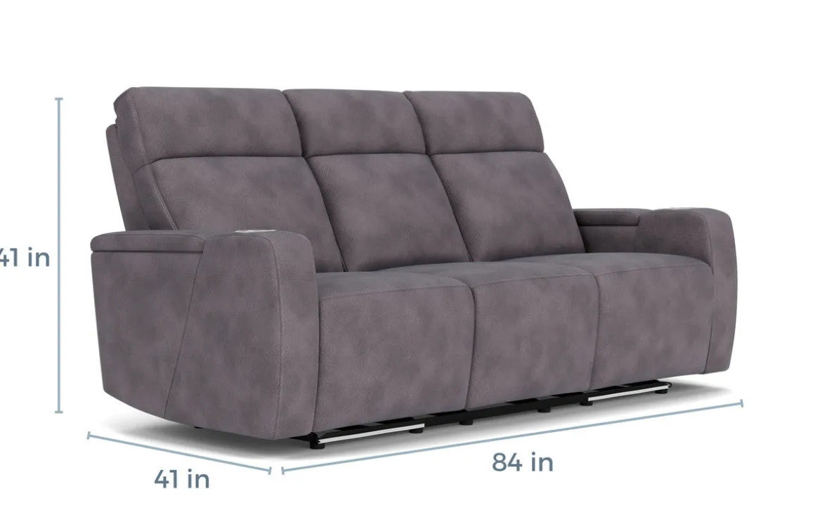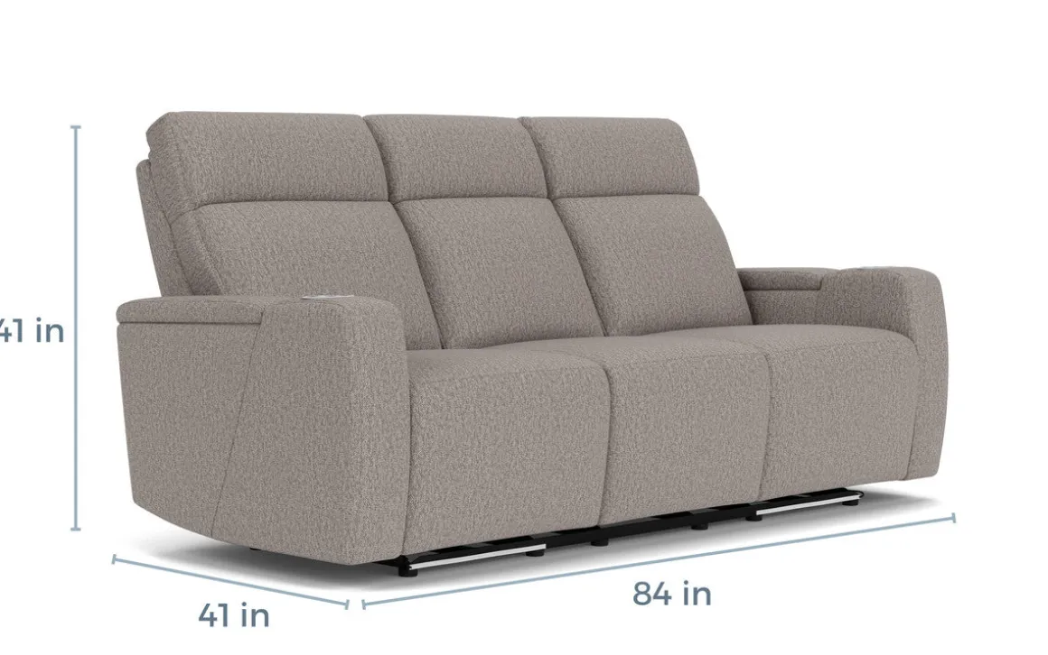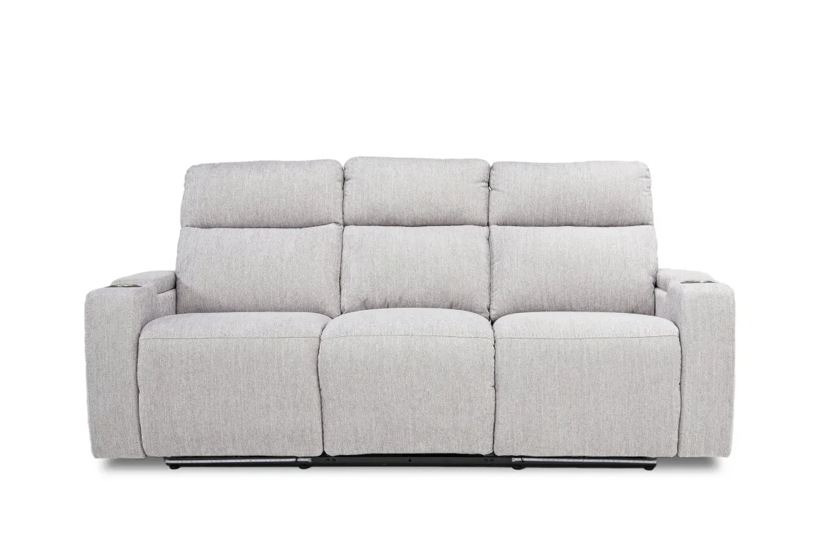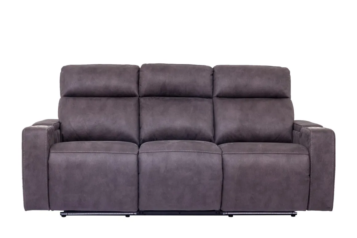 Bring life and comfort to your family room, den or home theater space with the Rhys 2 Power Sofa in Brown. Whether it’s for game day or movie binging, this sofa has everything you want, with two cozy, easy-button recliners, power functions and cup holders, all in rich brown fabric upholstery for a dignified look to your seating layout. Center seat features drop down table with reading lamps, USB outlets, and cupholders so you can make the most of your theater-like experience.Product Details:• Attractive addition to your modern, transitional or eclectic space• Recliners operate at the touch of a button• Underlighting offers stylish feature to match modern style• Dropdown table adds additional function• Durable, comfortable fabric upholstery over kiln-dried wood frame• Convenient power features, cup holders and storage• Weight capacity up to 360 lbs each seatsDimensions:• 83.5”W x 40.5”D x 41”H