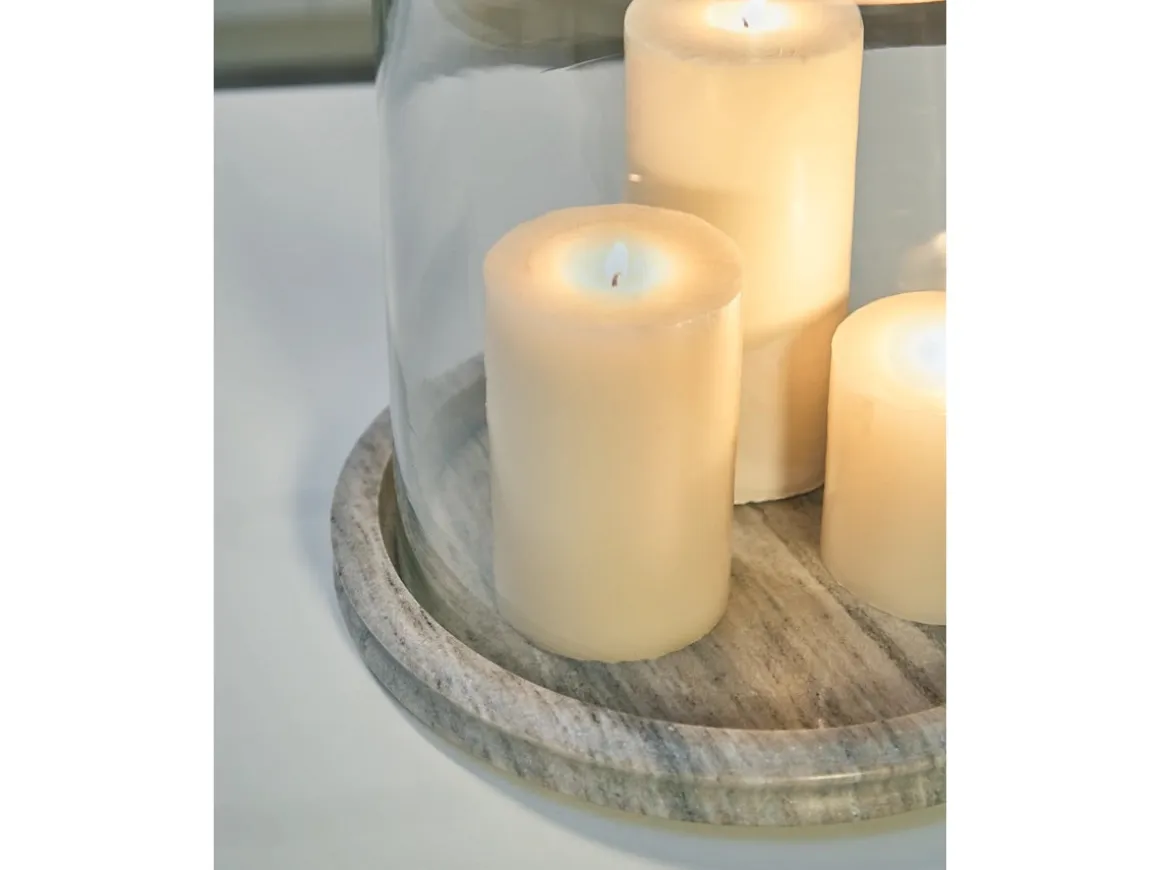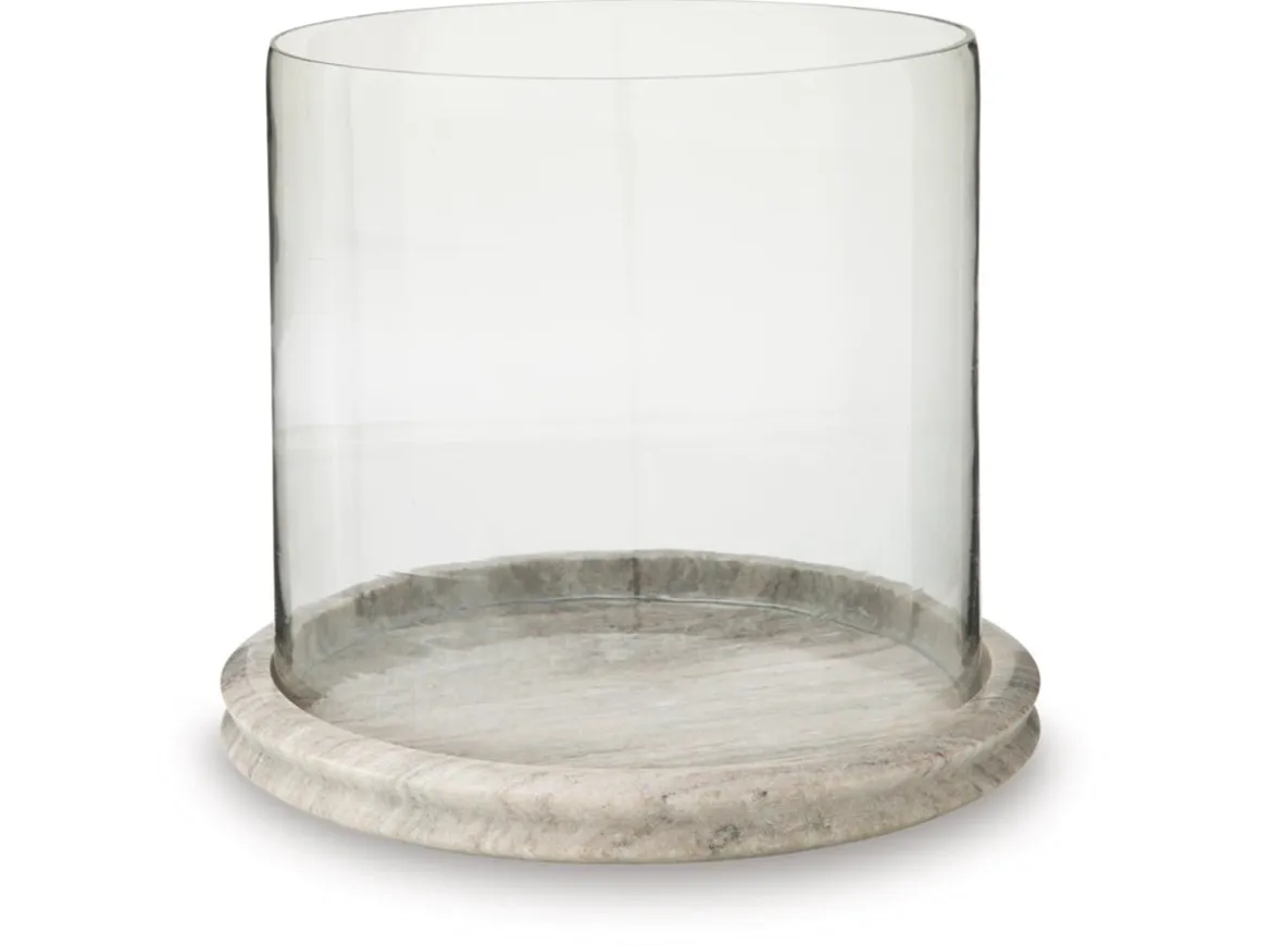 - Made with clear glass and beige marble