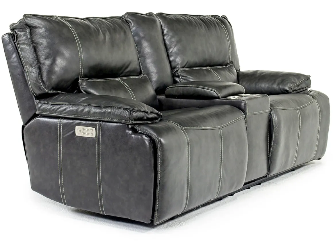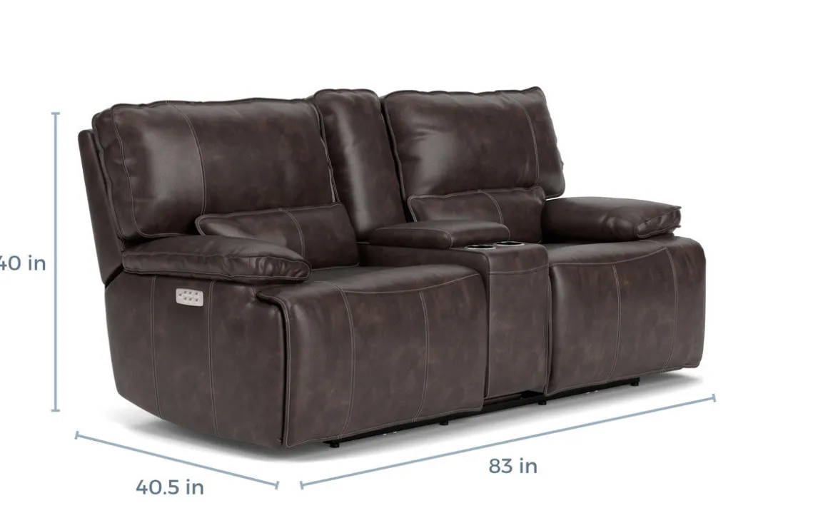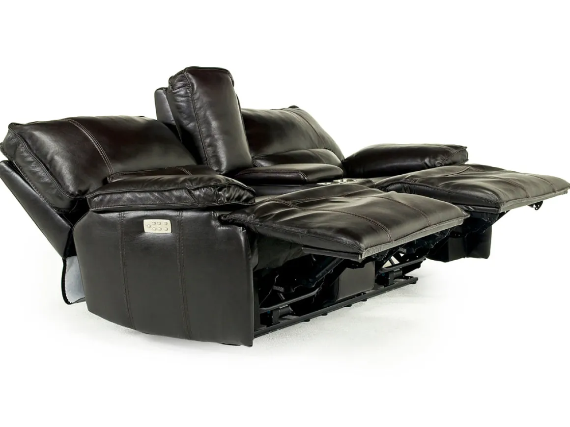Some of the best pieces of furniture in your home tell a story, and the Sofia 3 Power Console Loveseat in Brown Leather weaves a compelling narrative of comfort and class. Using only the best natural top-grain leather, and superior craftsmanship shown in each stitch, the Sofia 3 Power Console Loveseat is the absolute perfect addition to your home. Not just a stunning piece that draws your eyes, but this loveseat is also incredibly functional, with a console that boasts two cup holders and a deep central pocket. But the main feature of this sofa is the ability to kick up your feet on each end piece with a simple push button mechanism.