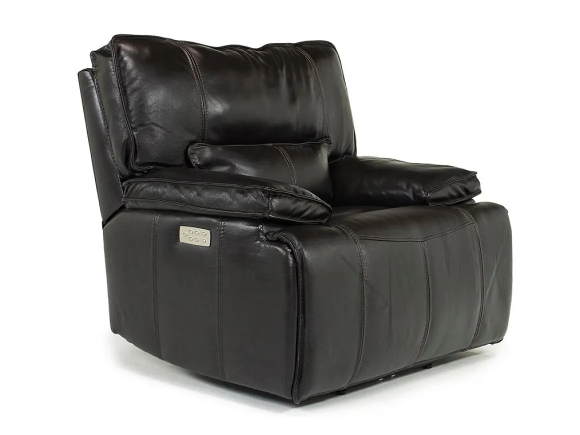 Settle in to this perfectly relaxing Sofia 3 Power Recliner in Brown Leather. You’ve got the power to relax in top style! With the smell of real leather and push-button power to recline, you’ve got everything you need for a comfortable evening. Foam cushions with sinuous spring seat support has just the right blend of give and support to make this the place you want to sit. Congratulations! You just found your new favorite chair!