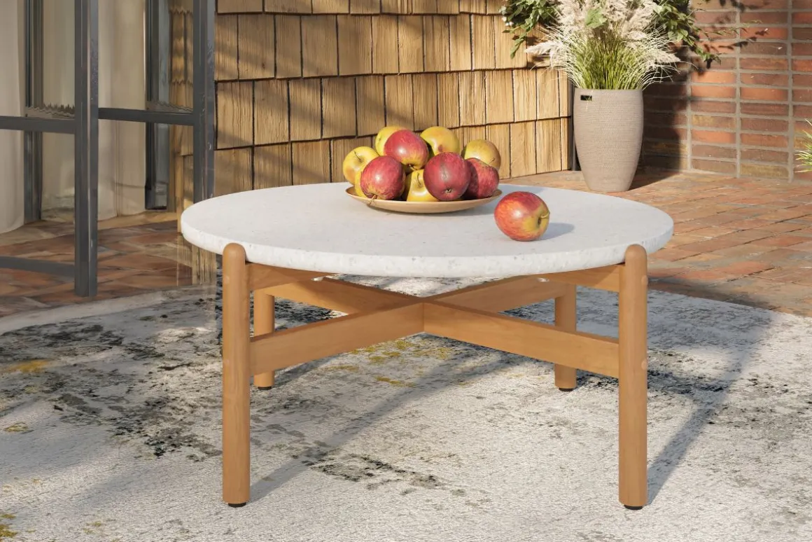 The Solstice Coffee Table is a blend of elegance and durability, designed to elevate your outdoor living space. The top, crafted from Terrazzo material, boasts the easy-care qualities of marble and the resilience of concrete, ensuring long-lasting beauty. Its weather-resistant nature makes it impervious to water, mildew, and mold, ensuring your table retains its allure season after season. Supported by an FSC Certified, Eco-Friendly Acacia Solid Wood base, this table is built to withstand the elements. The light, clear finish enhances the natural wood grain, adding a touch of sophistication to any setting. With Acacia’s inherent weather-resistant properties and a coating of UV protective oil, this table is safeguarded against water damage, mold, and sun damage. Assembly is quick and hassle-free, taking approximately 10 minutes with instructions provided for your convenience. Elevate your outdoor space with the Solstice Coffee Table, where durability meets timeless elegance for unparalleled outdoor enjoyment.