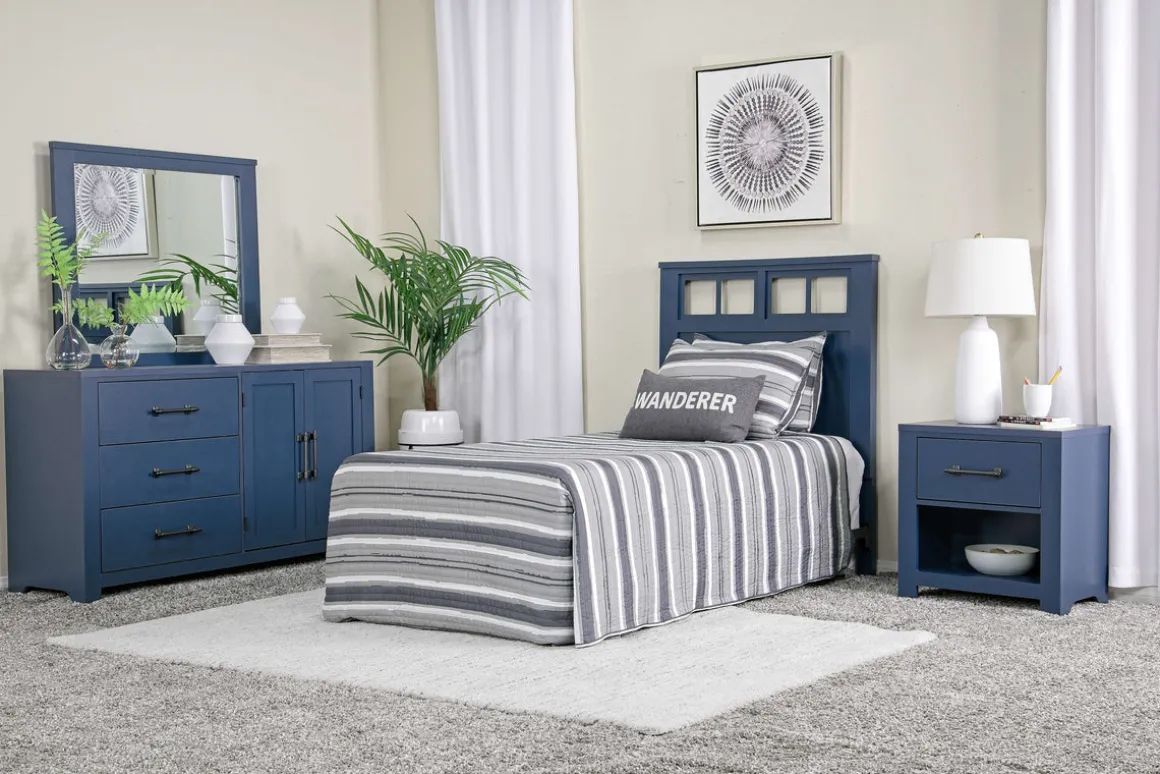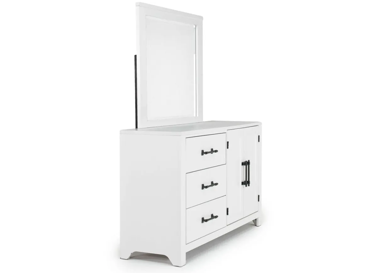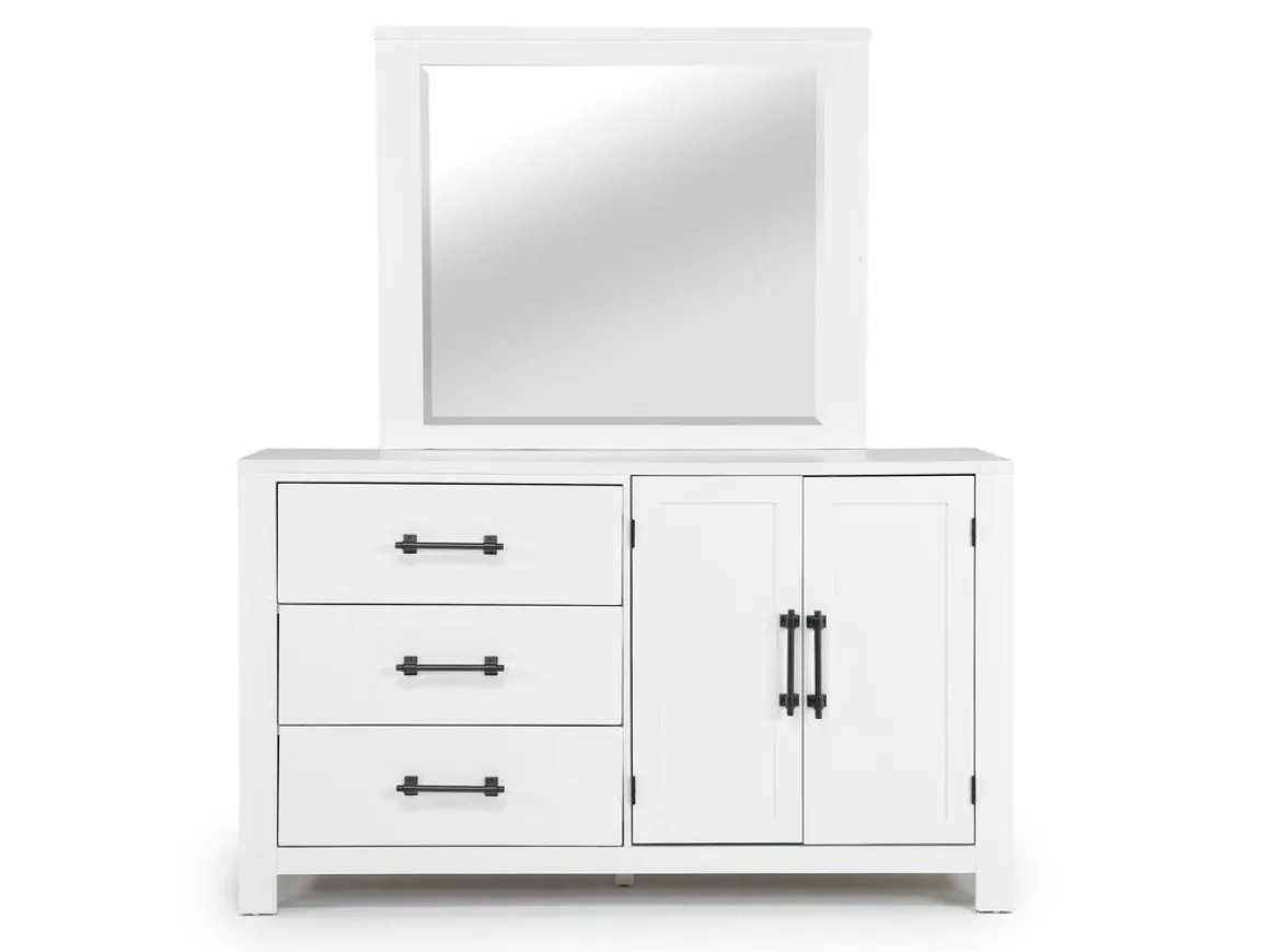 Refresh your bedroom with the clean elegance of the St Regis Panel Headboard, Dresser, Mirror & Nightstand in White, Twin. This farmhouse-inspired set brings a light and airy feel to your space, perfect for creating a peaceful retreat. The headboard’s panel design offers timeless charm, while the dresser and nightstand provide practical storage for daily essentials. A coordinating mirror adds depth and brightness, making your room feel more spacious. With its crisp white finish and one-box convenience, this set is ideal for effortless setup and lasting style.