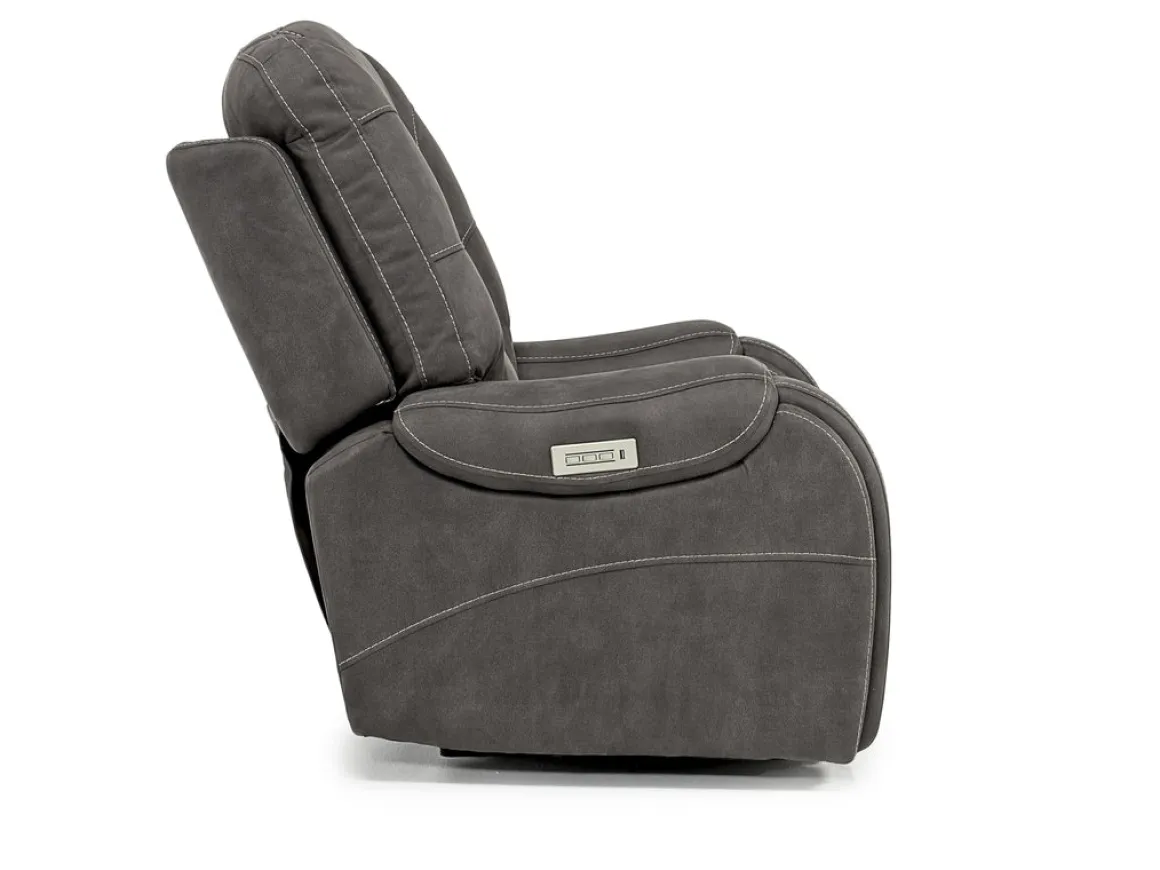 Nap in the lap of luxury. The luxurious STR 3 Power Recliner w/ Wireless Charger in Gunmetal takes you to an oasis of relaxation, no matter what’s happening around you. This style-rich, comfort-centric recliner has power control so you can find the perfect headrest, extended footrest and lumbar support positions. But it also meets today’s technological demands with bluetooth capability, a wireless phone charger and a USB port. A ”layflat” mechanism provides the apex of customized naptime enjoyment, and rest assured that its granite color and clean, classic yet cozy lines blend beautifully into your existing decor.
