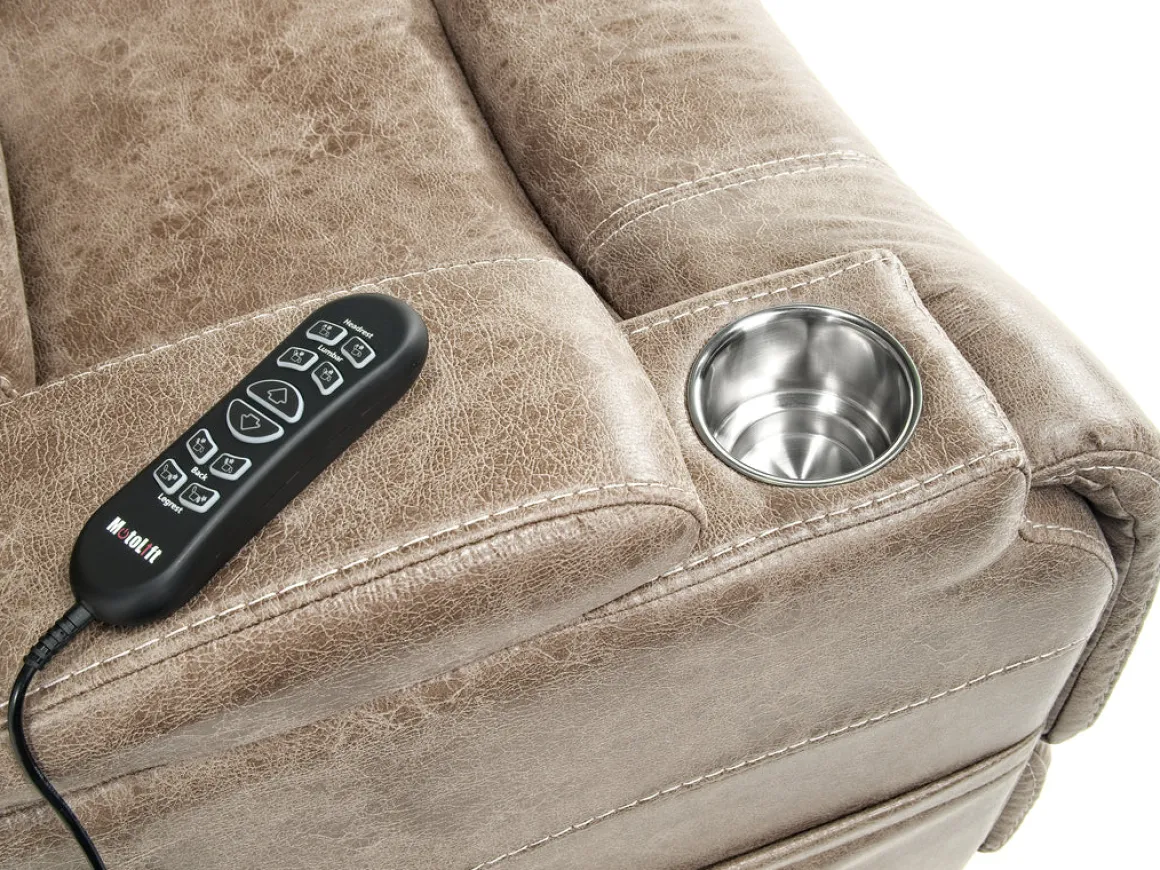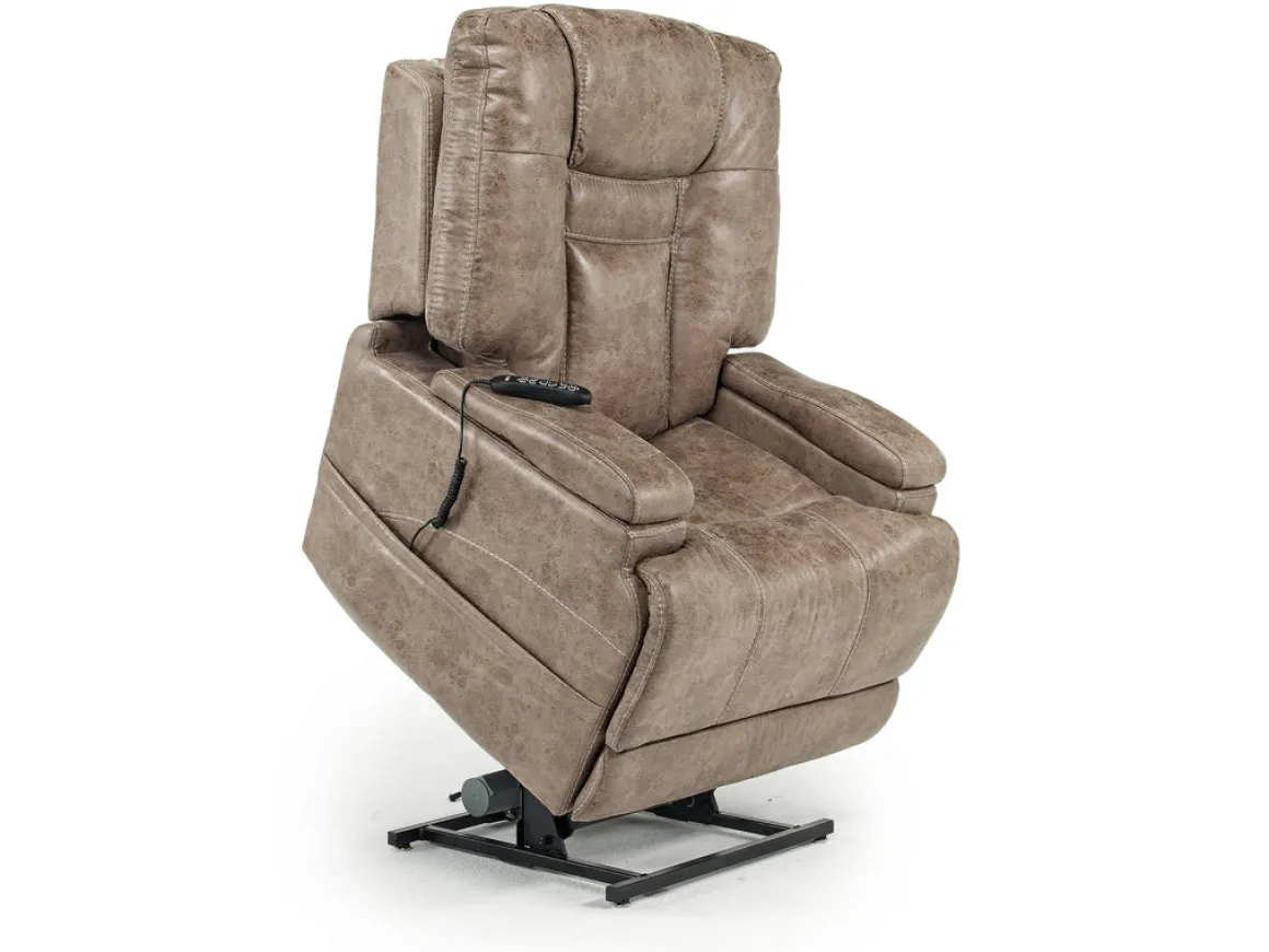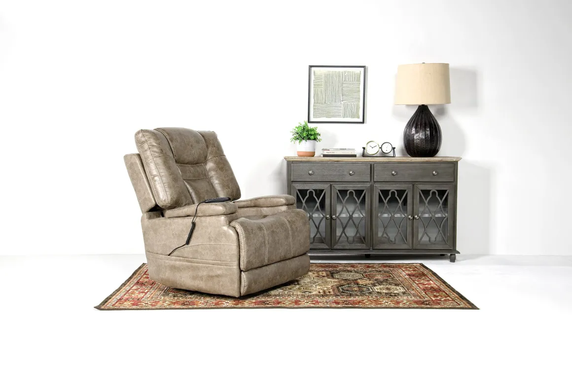 Need a little help getting in and out of your recliner, but don’t want to sacrifice comfort? The STT 3 Power Lift Chair in Mushroom cradles you in relaxing luxury while lifting up, bringing you closer to a standing position every time you get in or out of the chair. A convenient remote control lets you operate the lift or recline with ease so you find that perfect position to relax and enjoy life. The soft polyester upholstery not only looks elegant, but it surrounds you in absolute comfort so you can binge TV shows, read a great book, enjoy conversations or catch a nap. Each arm slides back to reveal a USB port on one side and a cup holder on the other side. The mushroom hue fits beautifully into most home decor styles.