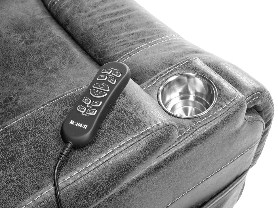 • Remote control lets you operate the chair’s lift function, as well as change recline and footrest positions