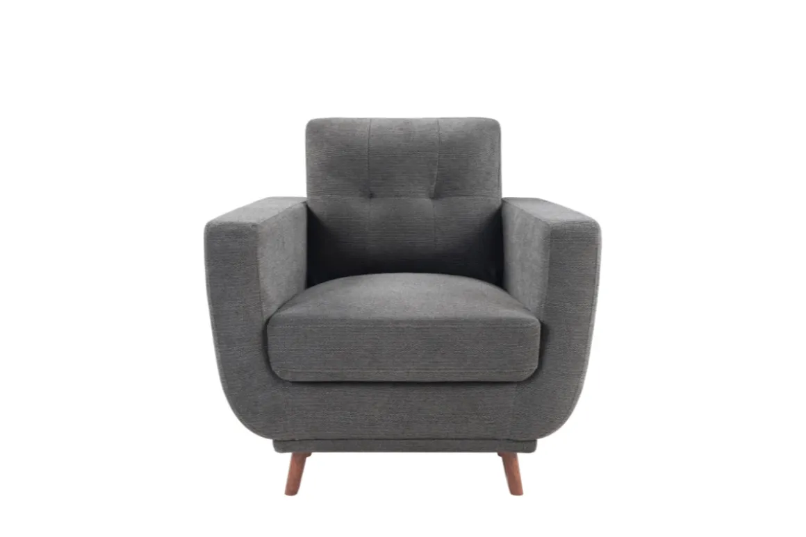 The Sussex Chair in Dark Gray brings a refined, mid‑century modern touch to any living space with its clean lines, gently rounded arms, and tailored silhouette. Foam cushioning and a supportive tight back create a cozy retreat—perfect for unwinding with a book or sharing quiet moments with family. The loose seat cushion adds everyday comfort, while the dark gray fabric offers versatile style that blends seamlessly with contemporary decor and family‑friendly living. With its compact footprint and timeless design, the Sussex Chair makes it easy to refresh your home with lasting comfort and value.