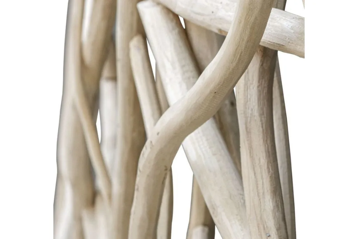 Made entirely of teak in a natural finish, these intertwined, organic branches form a captivating geometric design.