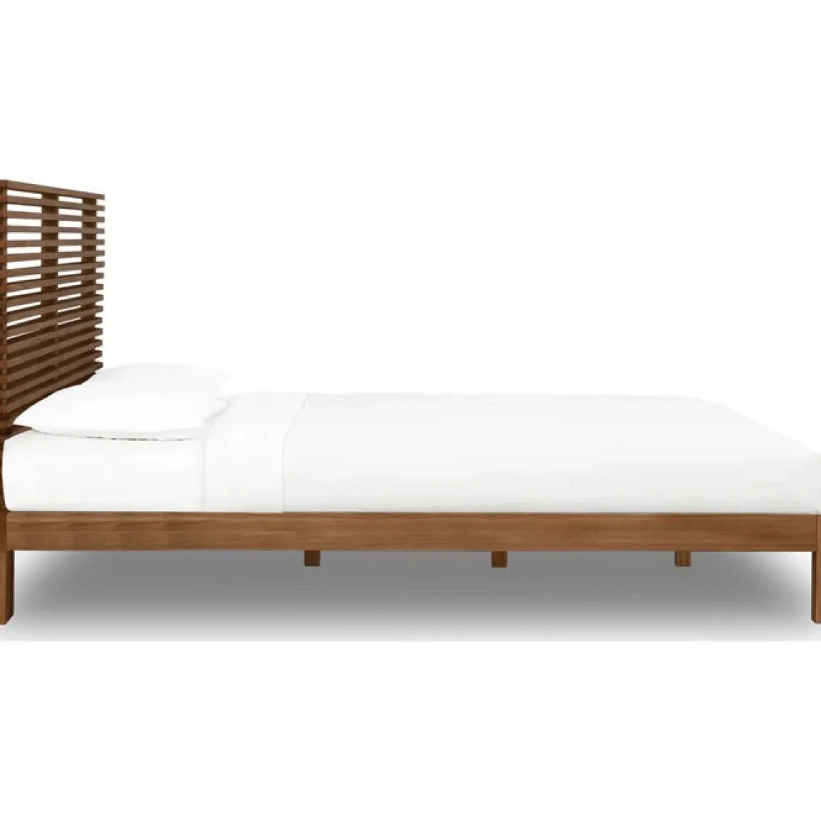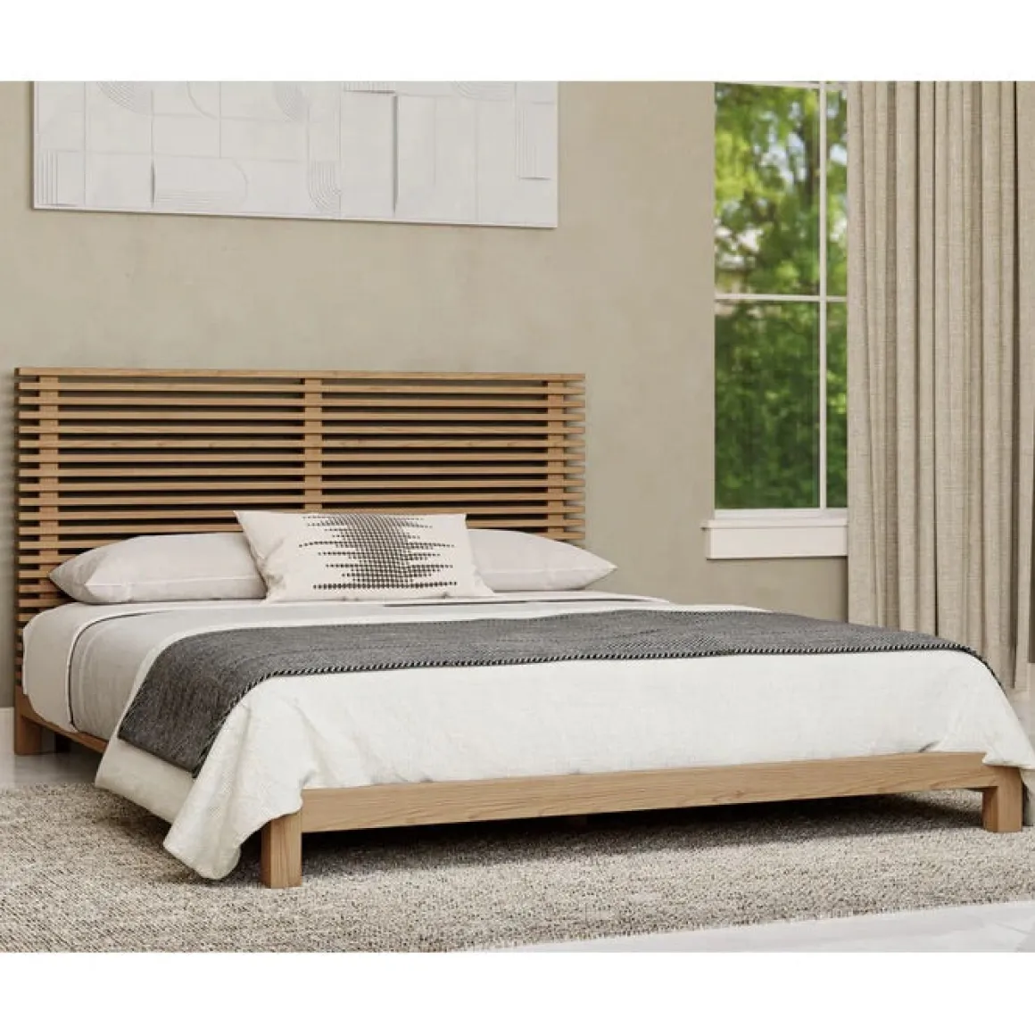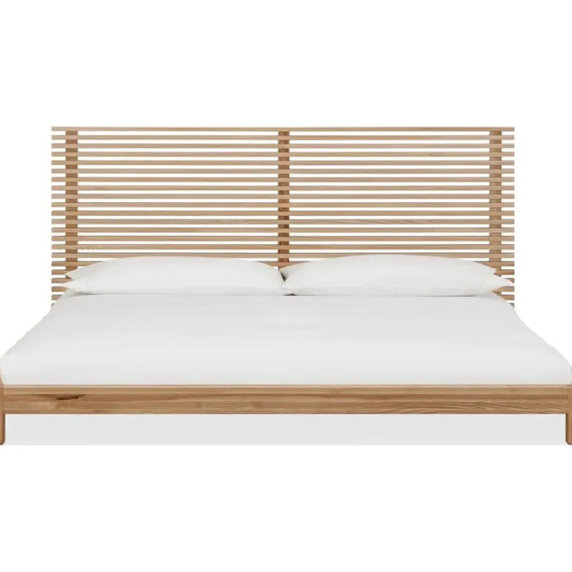 The Tanner Platform Bed in Flaxen, Full is the perfect embodiment of the Japandi design aesthetic, a beautiful blend of Scandinavian minimalism and Japanese warmth. Featuring solid ash fronts and frames, this slatted bedroom collection exudes a calming and inviting atmosphere. Available in modern earthy brown Roux and natural-tone Flaxen finishes.
