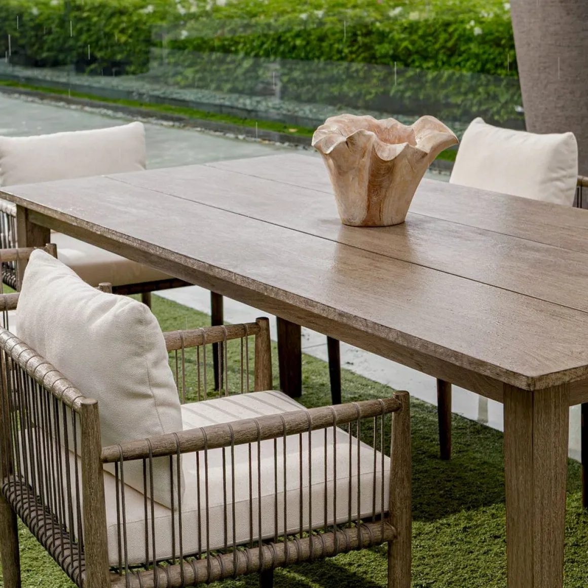 Crafted from natural teak wood, this stunning bowl showcases organic beauty with its flowing sculptural form. A perfect blend of art and function, it adds rustic elegance to any space while serving as a unique centerpiece or decorative accent. Because each is individually handcrafted, natural variation will occur from piece to piece. Safe for outdoor use.