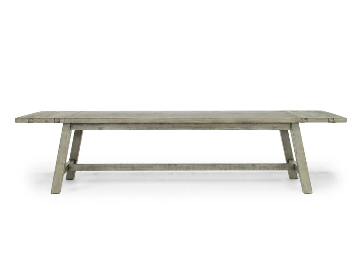 Invest in quality and aesthetic appeal for your home with the Telluride Dining Table in Driftwood, a masterpiece of transitional design and functionality. With its ample leg height of 28 inches and spacious slab top measuring 12 inches, this rectangular table provides a comfortable dining setting for your family and guests. Easy to maintain, simply dust with a soft, dry cloth and handle spills promptly for long-lasting beauty.Product Details:• Constructed from pine solids and veneers• Features a trestle base and two removable leaves• Boasts straight wooden legs