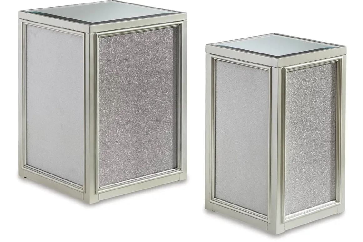 The Traleena Nesting Table, Set of 2, is a contemporary and stylish addition to any living space. The tables have a generous depth of 16.13 inches, providing ample space for placing decorative items or displaying collectibles. The legs of the tables are straight and made from sturdy materials, ensuring stability and support. This set also has a gray finish, which complements the silver color and offers a unique and contemporary look. Product Details: • The tables feature a sturdy pedestal base, which adds a modern and minimalist feel • They are square in shape, providing a clean and contemporary look • They are constructed using wood, engineered wood, and textured laminate