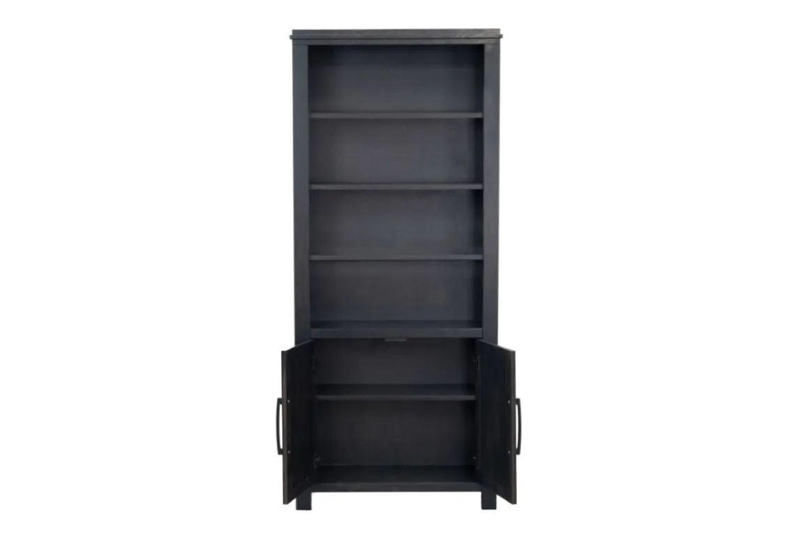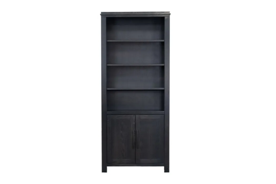 Add sleek storage and modern charm to your entertainment or living space with the Tybee 2 Door Bookcase in Black. This transitional piece features a clean-lined silhouette and a bold black finish that complements a wide range of decor styles. With two doors for concealed storage and open shelving for display, it’s perfect for organizing books, media, or decorative accents. Whether placed in a home office or living room, the Tybee Bookcase offers both style and function for everyday living.