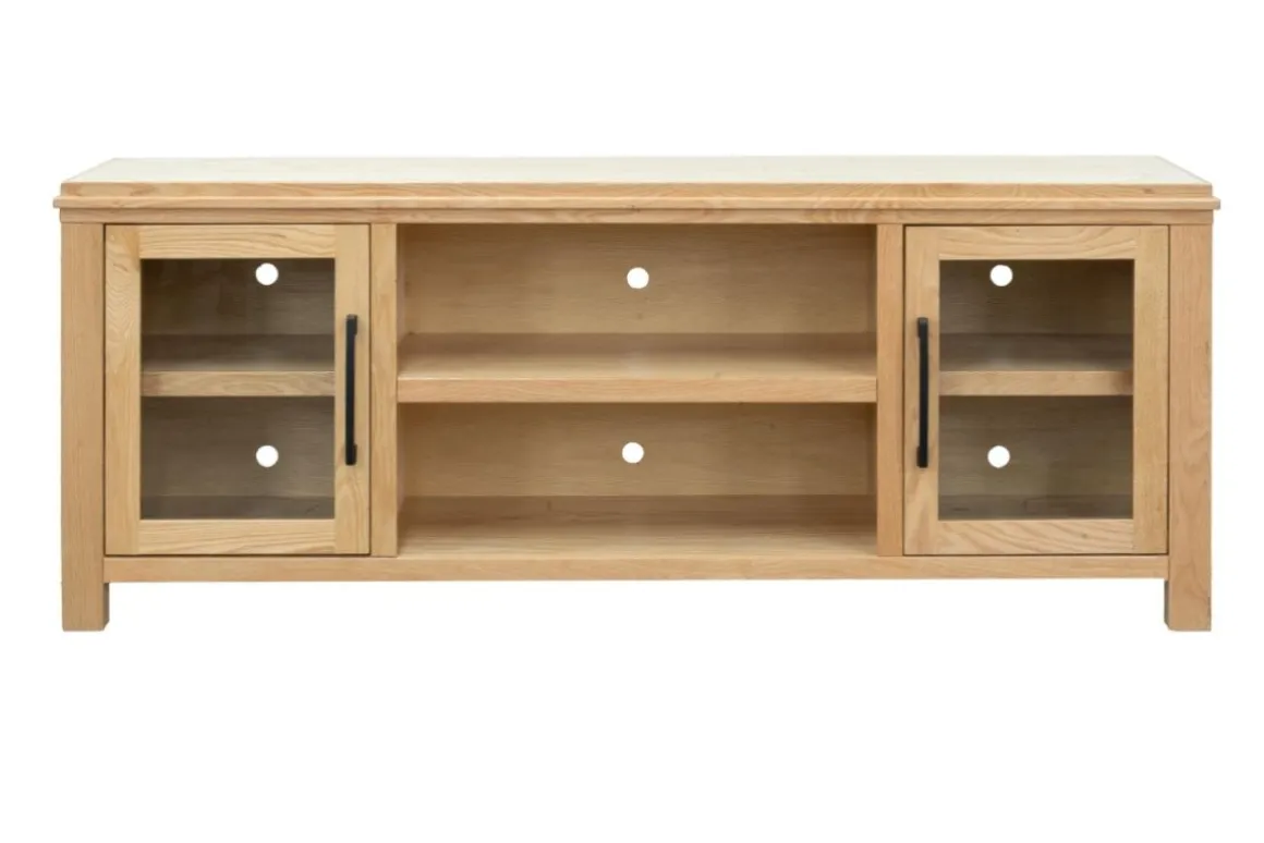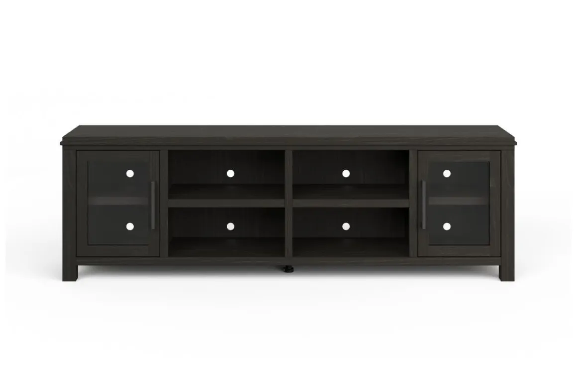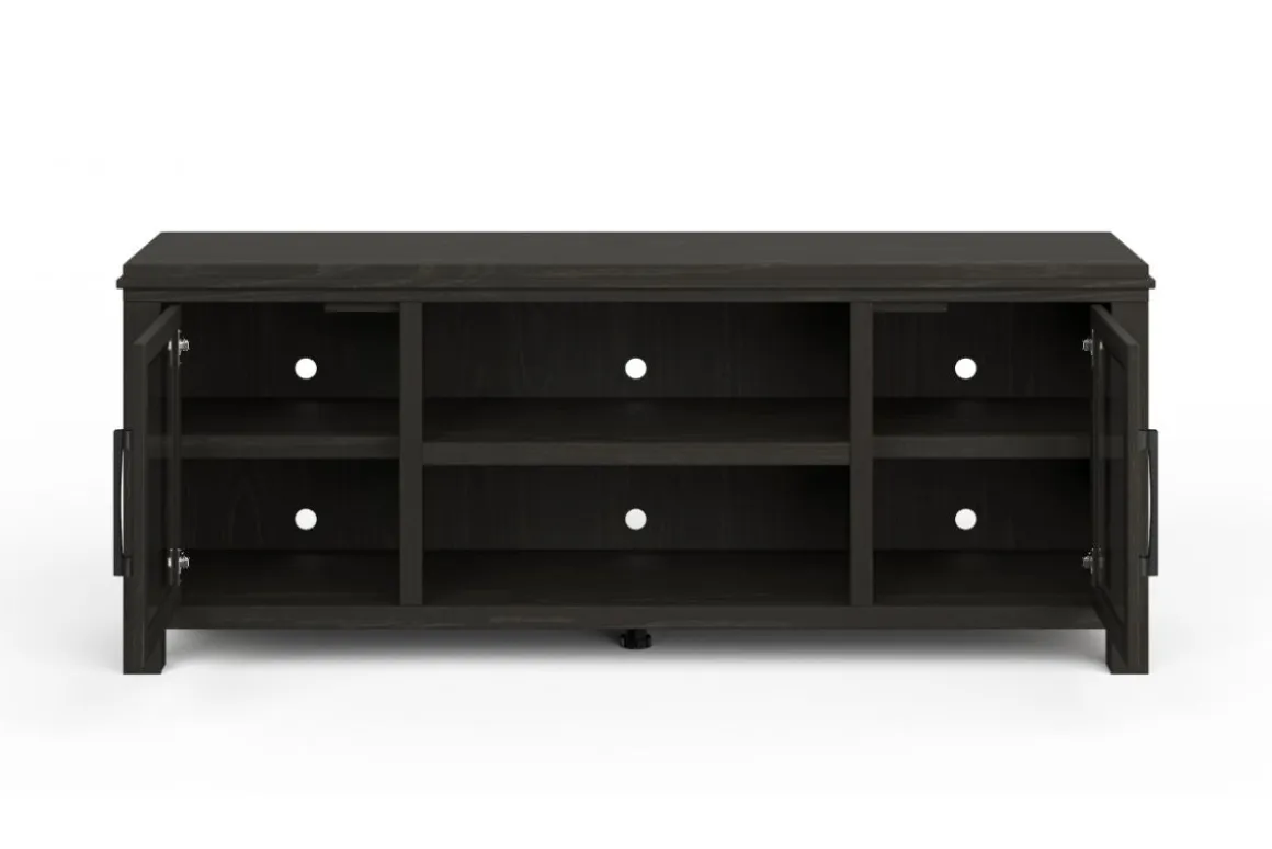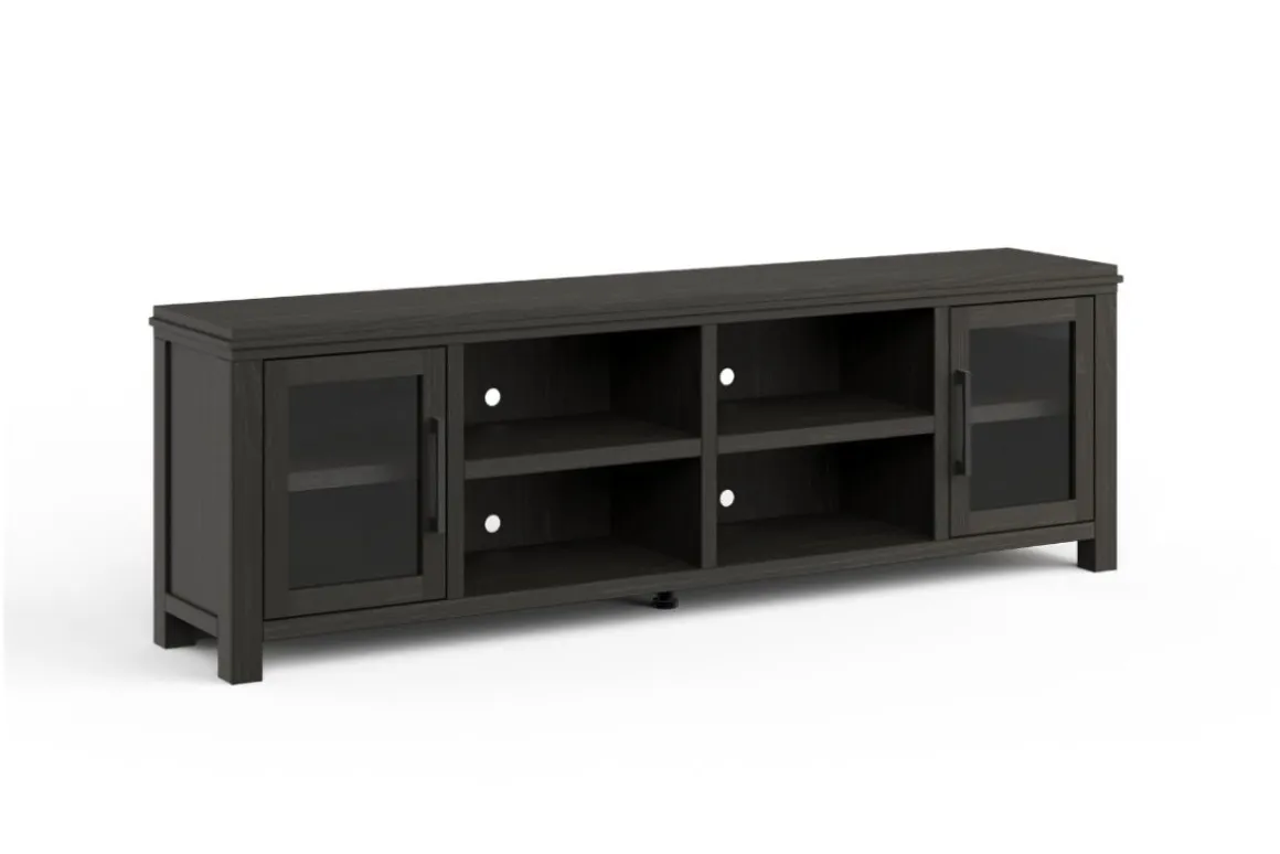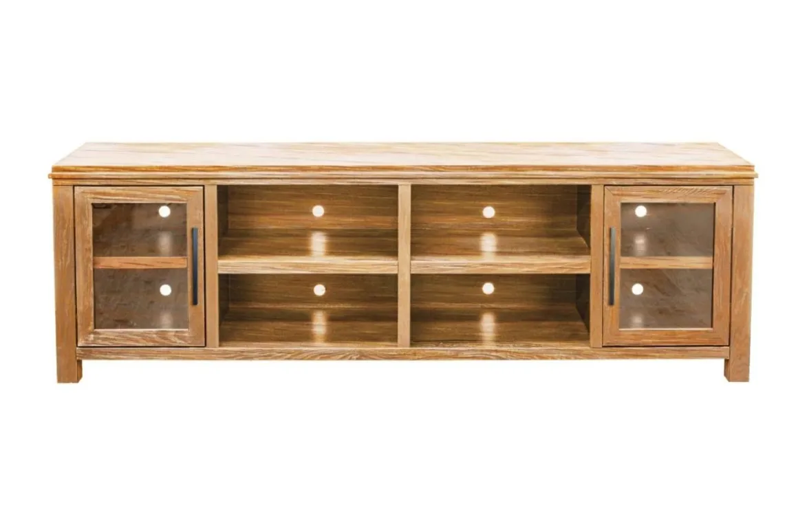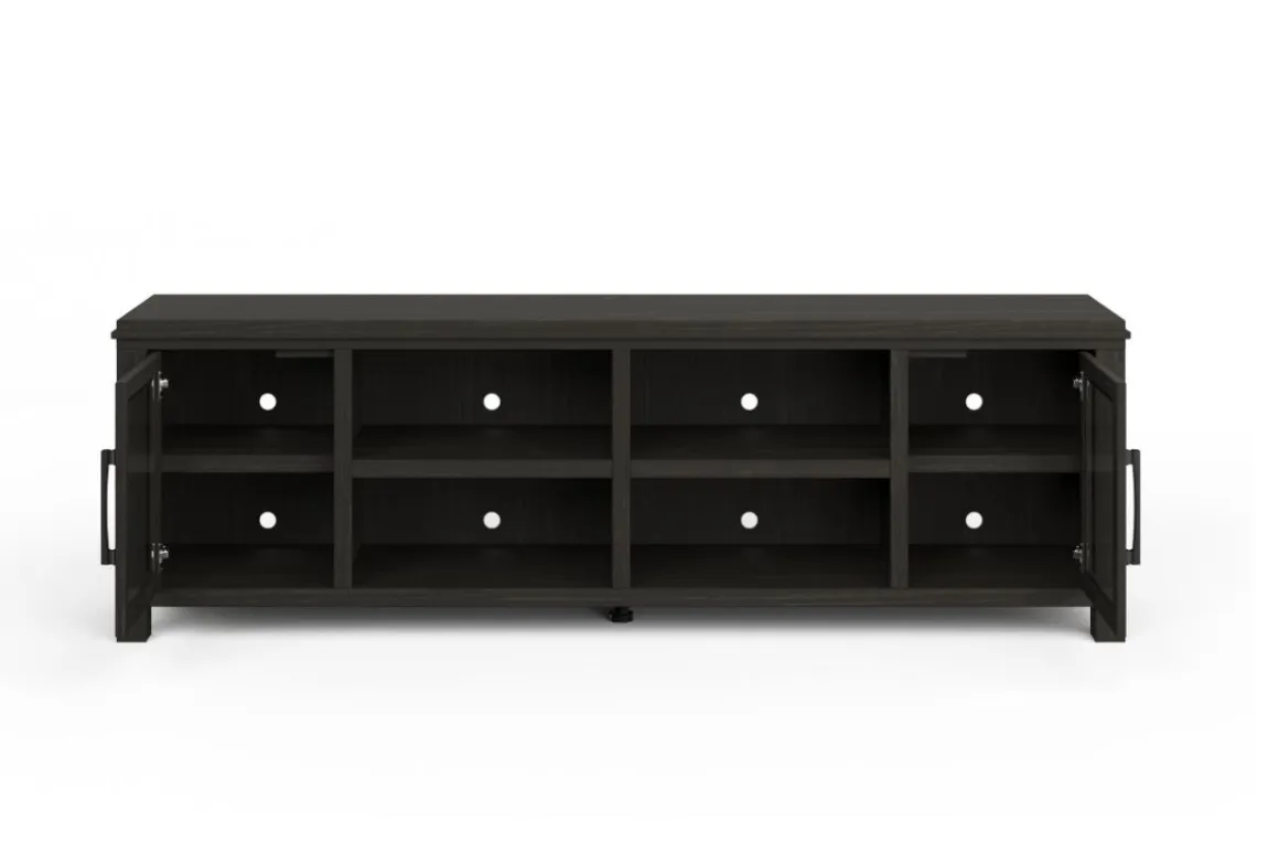 The Tybee 85″ Fireplace TV Stand, a highlight of our Designer Series, blends contemporary fashion with functionality. It supports TVs up to 95″ and features elegant Oak Solids and Veneers for a unique aesthetic.