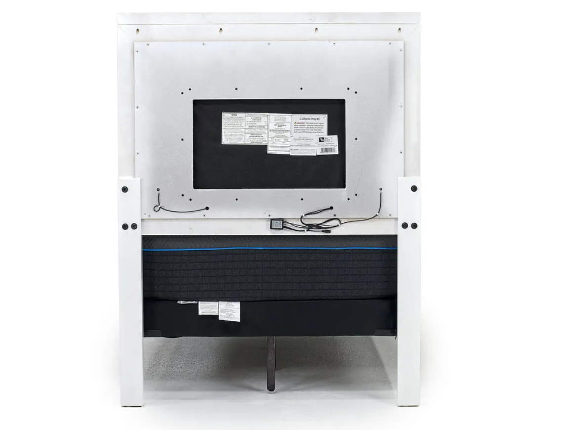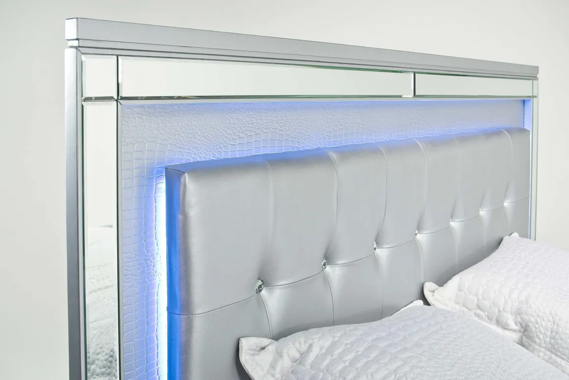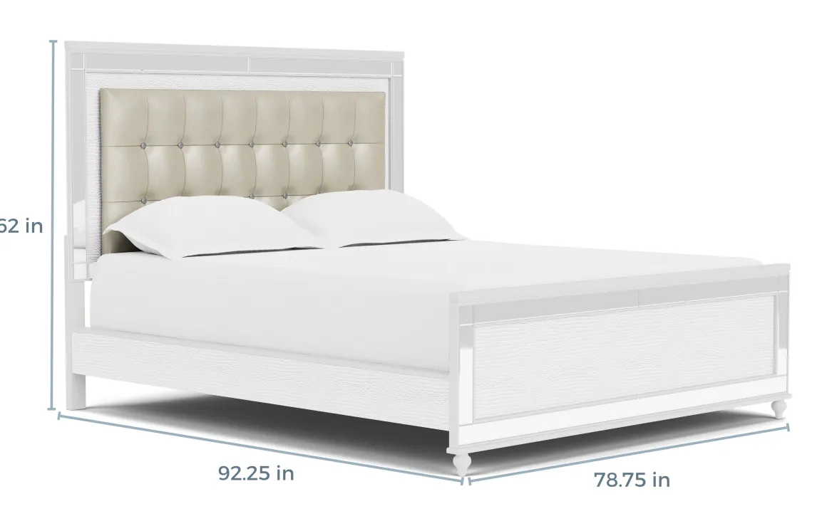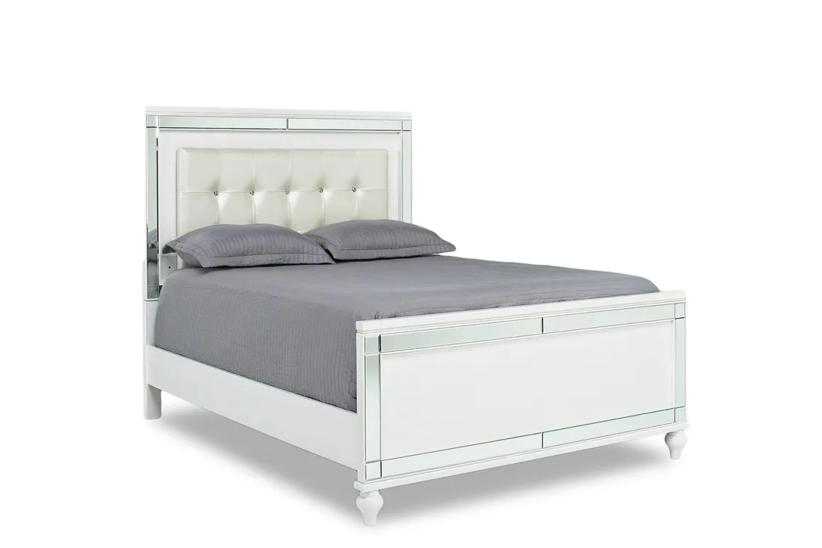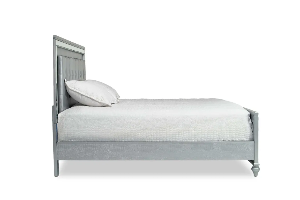 Highlighting bold chrome and bright white colors, the Valentino Panel Bed in White, Twin is the most unique bed that you’ll ever find. A luminous white paint covers the majority of the bed frame, with striking, mirror-like chrome inlays on both the headboard and the footboard. The Valentino bedroom collection is specifically for those who want to make a bold statement with their bedroom furniture, so if you’re considering purchasing this bed, then you should also purchase the Valentino Chest in White to complete the ensemble.