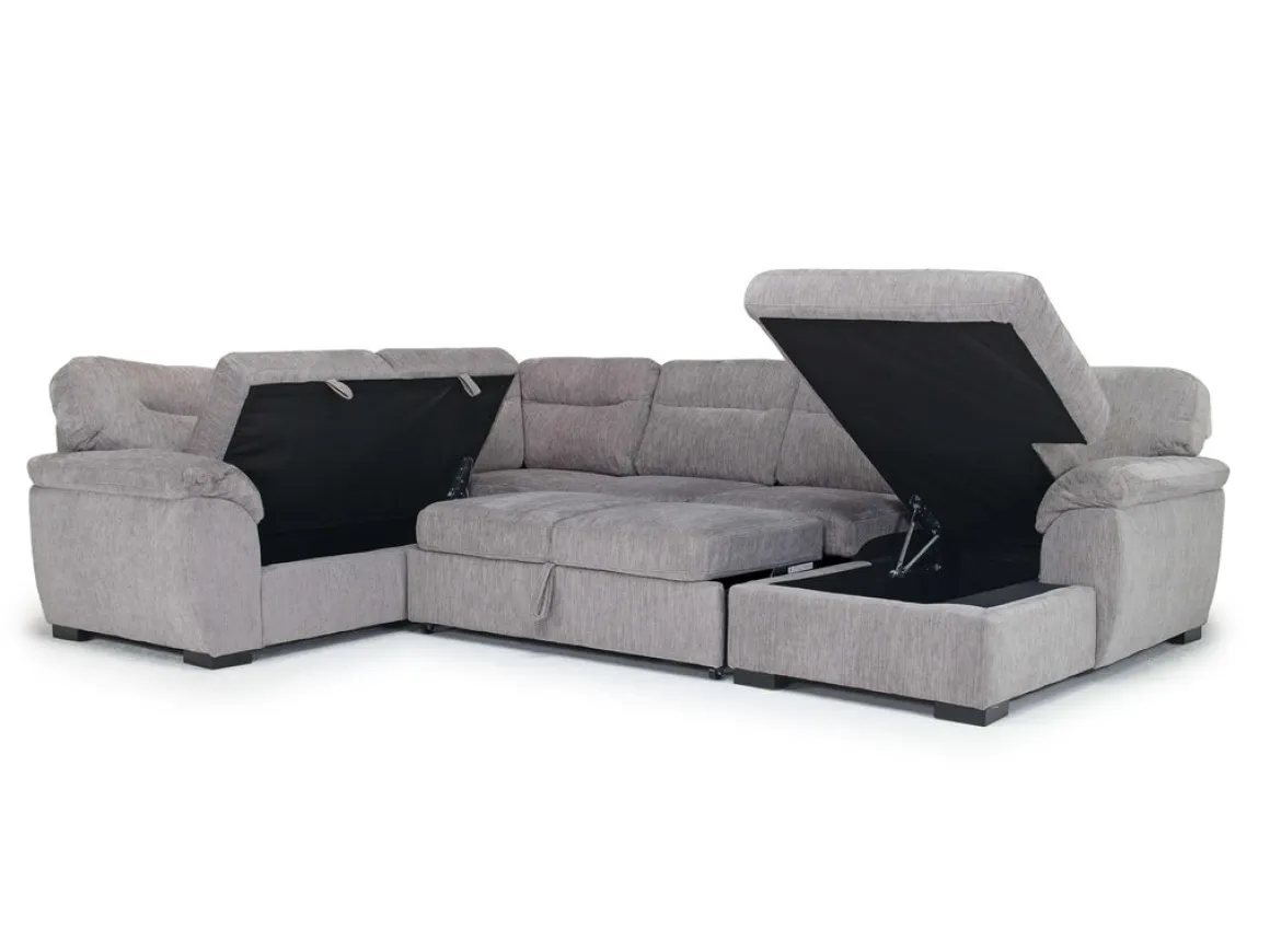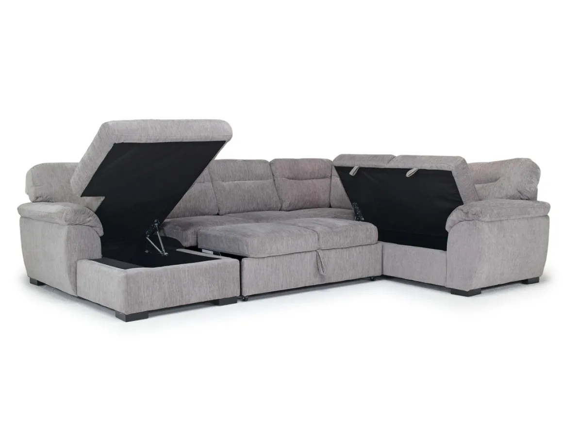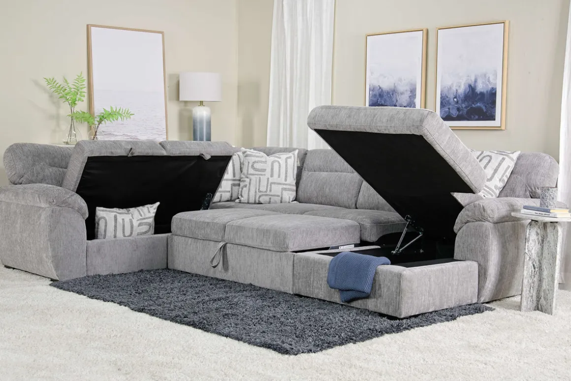 Wanda Full Pullout Tux Storage Chaise Sectional In Gray, Left Facing