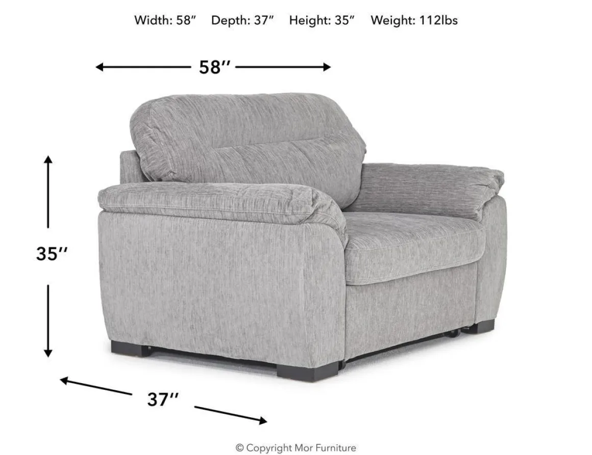 Perfect for small spaces and a quick nap, the Wanda Twin Sleeper Chair in Gray offers cozy seating by day and a convenient sleep solution by night. Wrapped in soft California Gray fabric and filled with foam cushioning, this chair features a manual twin-size pullout sleeper that’s ideal for family rooms, guest spaces, or kids’ rooms. Its casual silhouette with a tight back and loose cushions blends effortlessly into modern and transitional decor, making it a stylish and functional addition to any home.