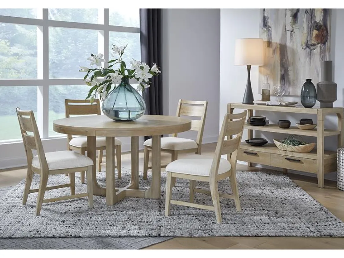 Gather your loved ones around the White Oak Round Dining Table & 4 Chairs in Butternut—a warm and inviting set designed for everyday meals and special moments. The round table encourages conversation and connection, while the coordinating chairs offer comfortable seating with a transitional silhouette that suits a variety of interiors. Finished in a rich butternut tone, this set brings natural charm and timeless style to your dining space. Whether you’re hosting brunch or enjoying a quiet dinner, it’s a beautiful blend of form and function for family-focused living.