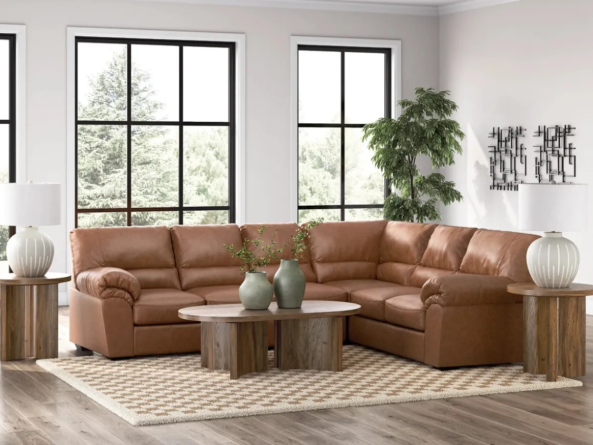 Make room for comfort and connection with the Whitlock Tux Sofa Sectional in Caramel, Left Facing, a spacious seating solution designed for family living. This sectional includes a left-facing 1-arm loveseat, an armless chair, and a tuxedo-style sofa, all wrapped in rich caramel brown upholstery. Foam cushioning offers plush support for everyday lounging, while the structured silhouette adds a tailored touch to casual and transitional interiors. Whether you’re hosting guests or enjoying quiet evenings, this sectional delivers warmth, durability, and timeless style.