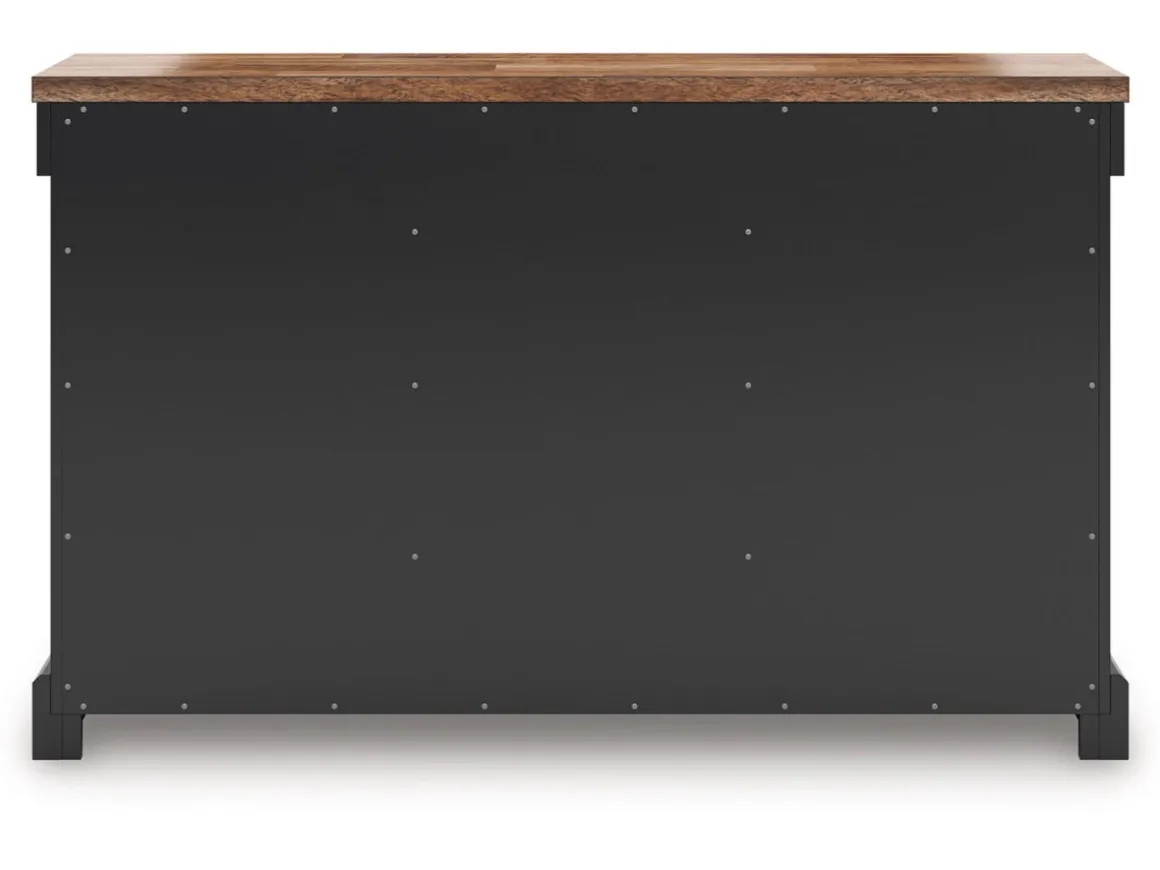 The Wildenauer Buffet in Brown/Black brings timeless charm and everyday usefulness together in one beautifully crafted piece. Its warm brown wood top adds a natural, welcoming touch, while the deep black base creates a striking contrast that works effortlessly with farmhouse, traditional, or modern classic decor. Perfect for dining rooms, living spaces, or entryways, this buffet offers generous concealed storage behind three paneled doors and convenient top drawers—keeping dishes, serveware, or family essentials neatly organized. Sturdy construction and clean lines give it lasting appeal, making it a smart, stylish addition to any home. Elevate your gathering spaces with a buffet that blends character, function, and family‑ready durability.