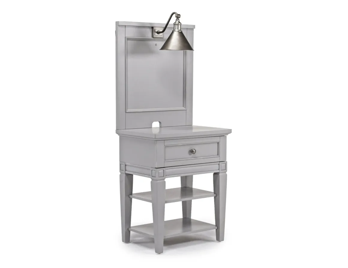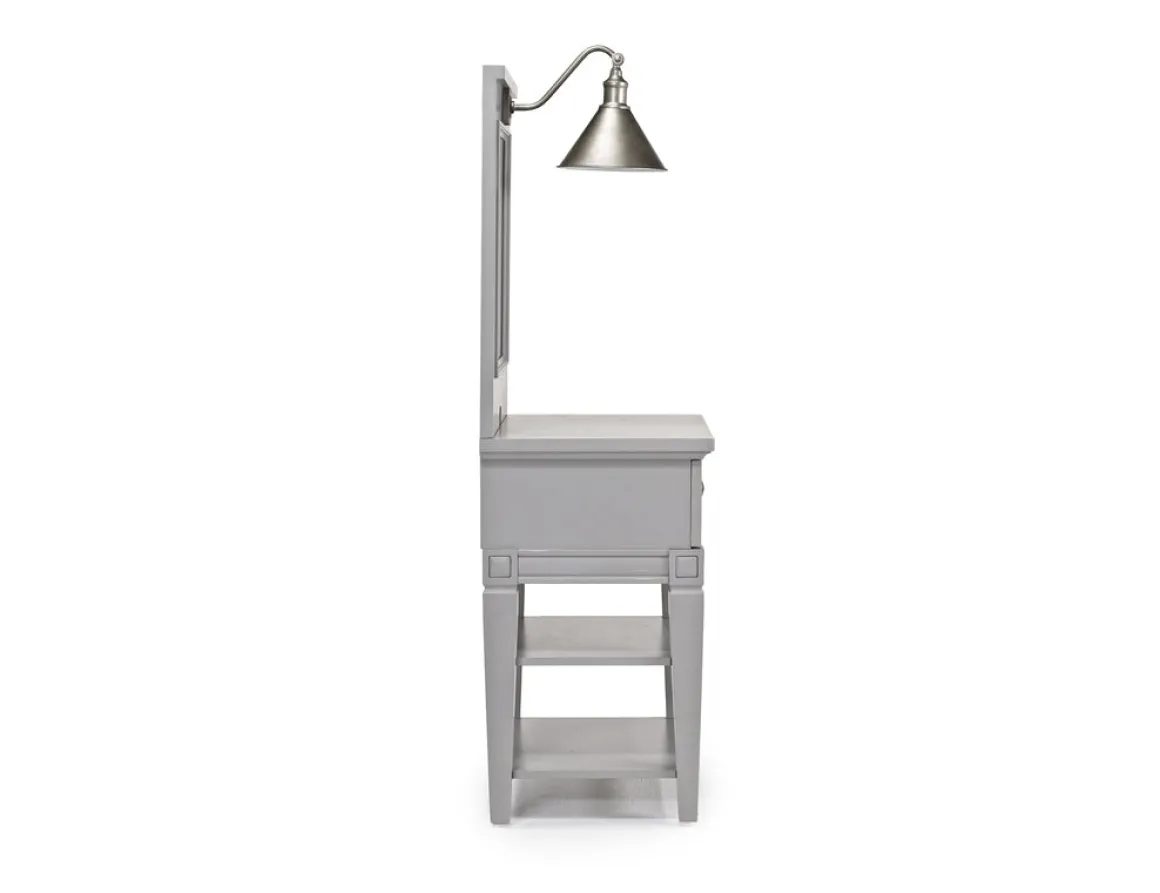 Make bed time more convenient with this Willowbrook Nightstand & Hutch w/ Lamp in Egg Shell White. It provides the perfect space for your phone and a glass of water next to your bed. It also provides convenient lighting while you enjoy your favorite book or a midnight snack. Notice the stylish hardware on the storage drawer, and the two handy shelves. You’ll have plenty of room for books and technology. Product Details: • Charming egg shell white color is a soft, neutral hue • One storage drawer pulls out easily and quietly • Quality wood construction