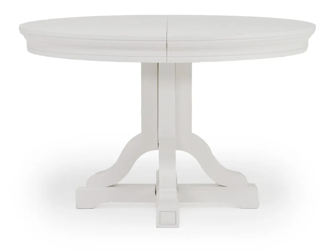 Choose the Willowbrook Round Dining Table in Pebble to create a welcoming focal point where cherished memories are made around shared meals. This beautifully crafted table features a transitional design that effortlessly complements a variety of decor styles. Measuring 48 inches in diameter and standing 30 inches tall, it provides a generous surface for meals, conversations, and gatherings. The inclusion of an 18-inch removable leaf allows for versatile seating arrangements.Product Details:• Constructed from durable hardwood solids and birch veneer• The slab top offers a smooth surface• Features elegant tapered legs and a chic pedestal base