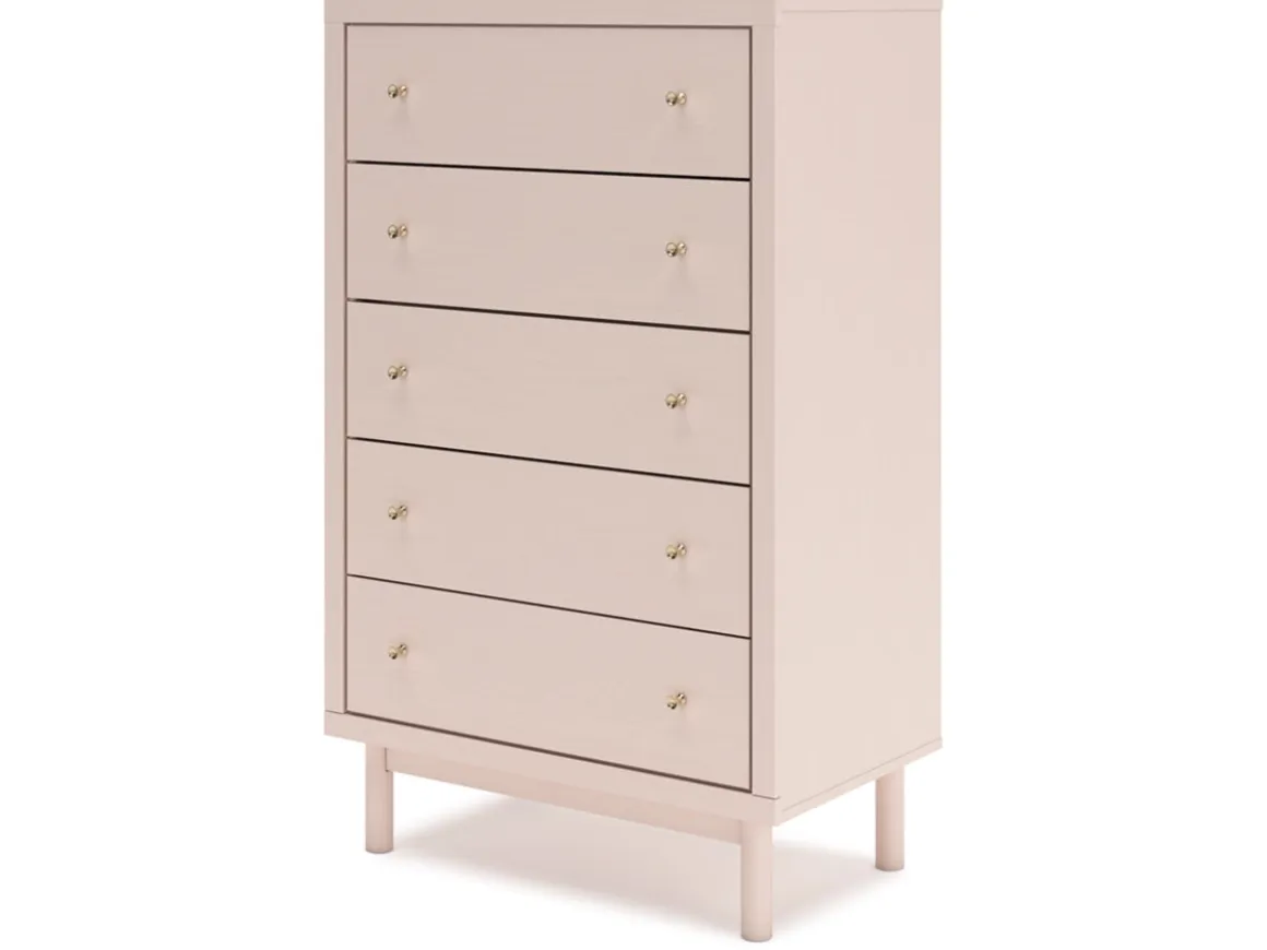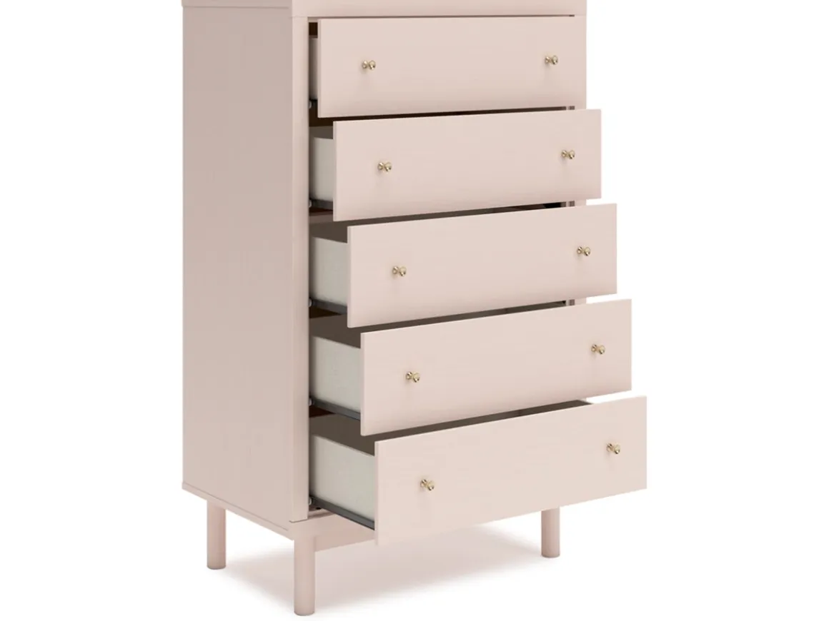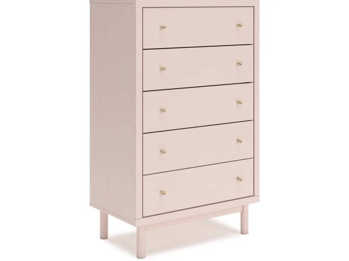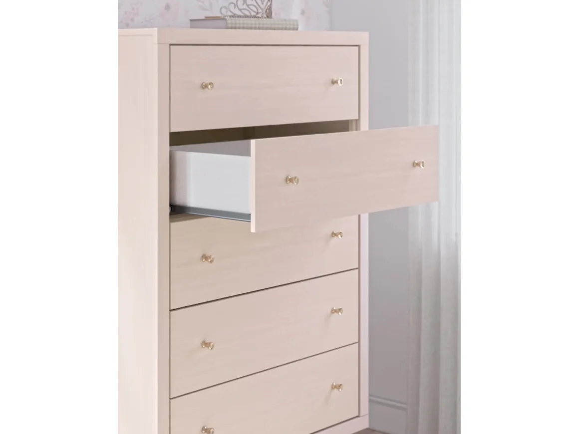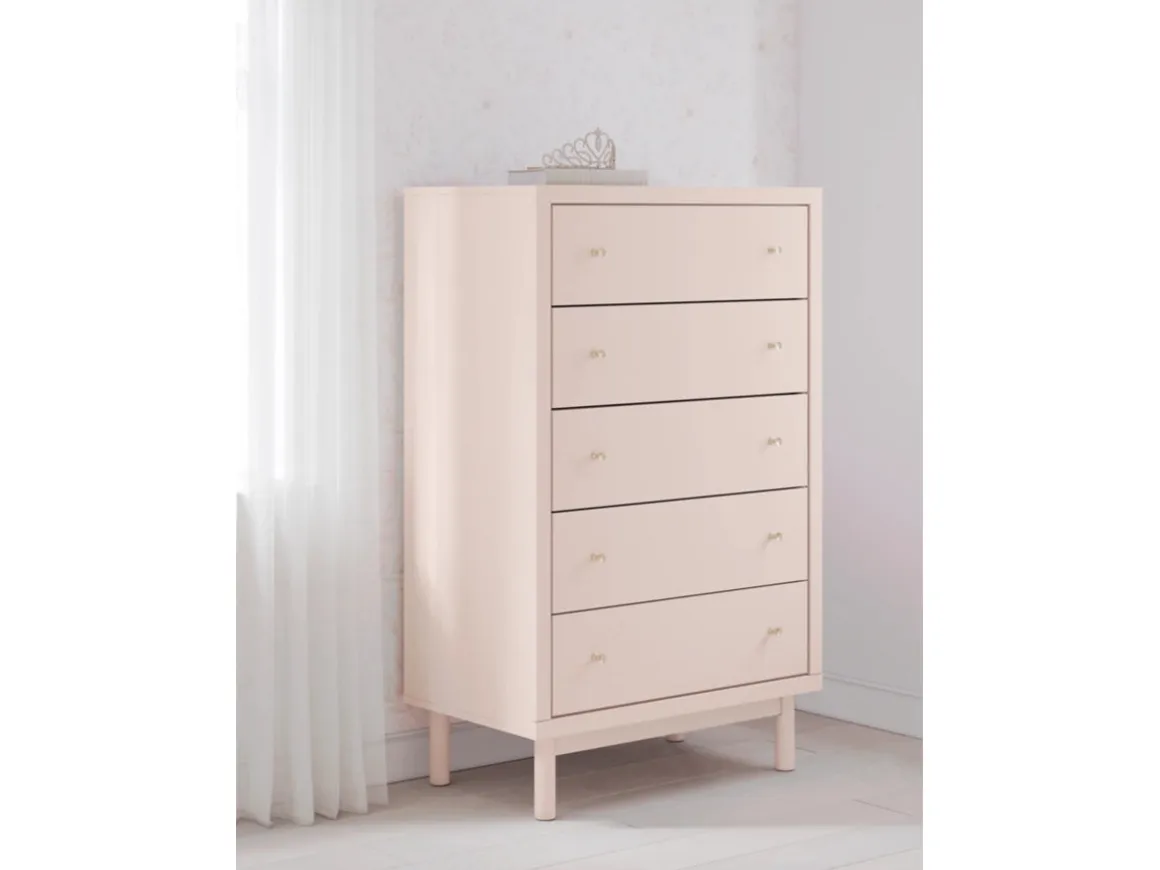 Pretty in pink. The Wistenpine Chest in Blush keeps the spirit of your home’s modern aesthetic while suiting all your young one’s needs. Its subtle blush finish brings a playful, charming vibe to organizing clothes and other essentials. Made for her and styled for you, it’s a lovely addition to a beautifully chic child’s bedroom.