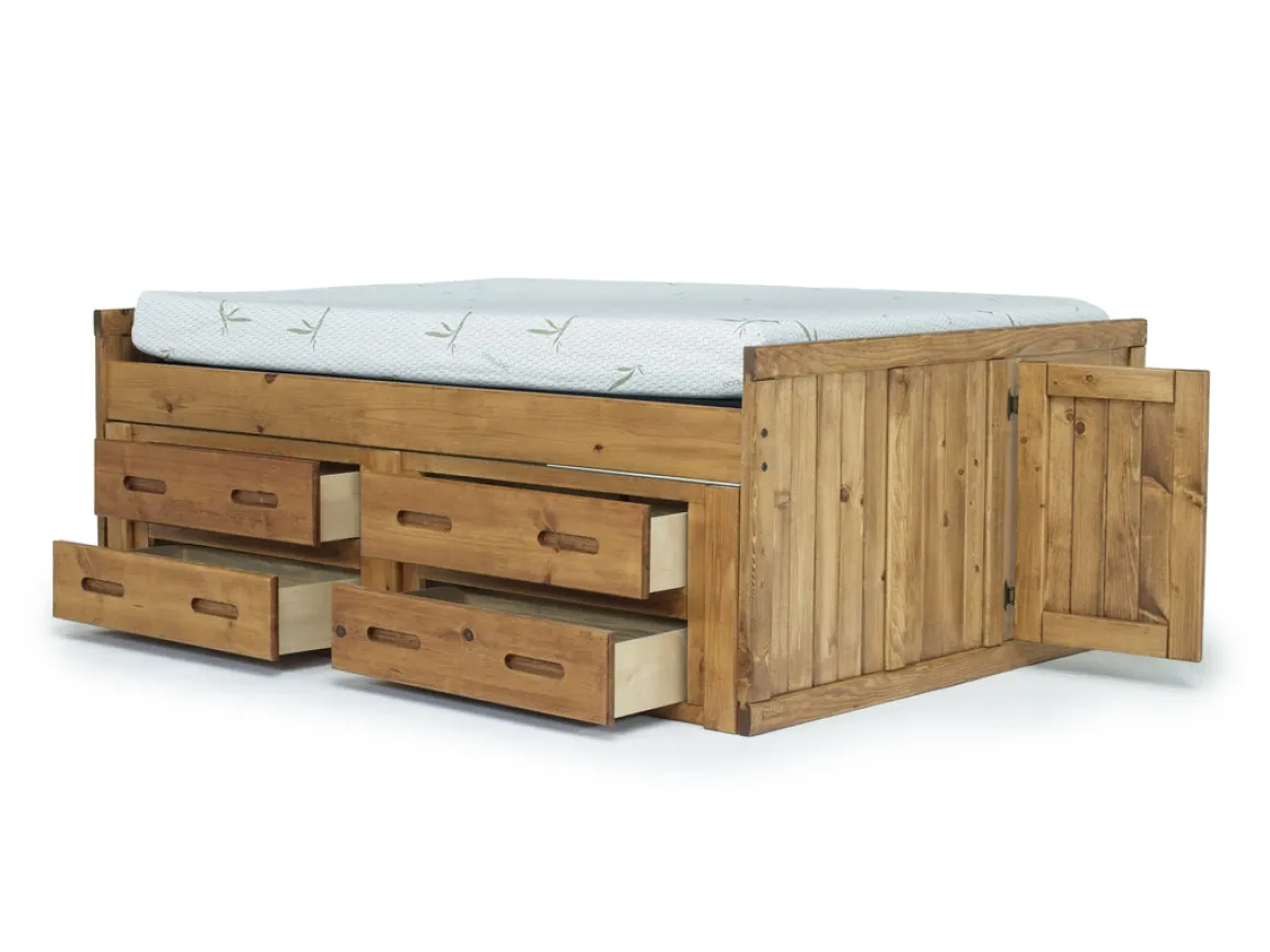 Maximize your child’s bedroom space and style with the Young Pioneer Captain Bed w/ 4 Drawer Storage in Natural, Twin. It features a raised platform design that provides ample storage space underneath. Four built-in drawers offer plenty of room for clothes, toys, or other belongings, helping to keep your child’s room organized. The natural finish creates a warm and inviting look that complements a variety of decor styles.