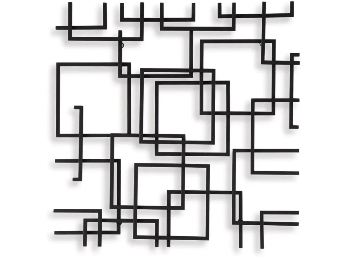 Ponder upon the abstract Aadanton Wall Art in Black. With its clean black lines, and sharp angles from its combination of squares and lines, this accent piece is a fantastic way to add depth and contrast to any room or empty wall. Hidden brackets allow you to mount this piece anyway you like while keeping the appearance clean.