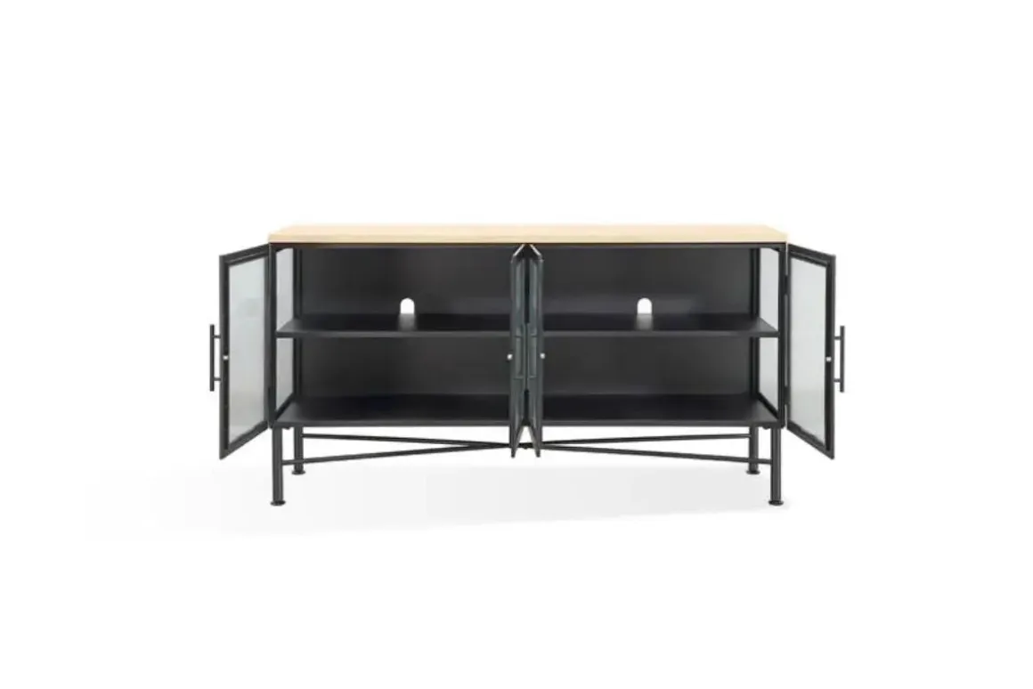 The Aere Sideboard in Natural Ash is a modern and sleek storage solution, perfect for contemporary living spaces. With its clean lines and neutral natural ash finish, this sideboard will complement any home decor. This stylish sideboard boasts full-extension drawer glides for easy access to belongings and English Dovetail drawer joint construction for added strength. The 5.6-inch floor clearance offers protection for your floors. Standing at 36 inches tall, this piece provides ample storage without overwhelming your space.Product Details: • The metal frame ensures stability and sturdiness • The sturdy English Dovetail drawer joints provide strength and durability • Enjoy easy access to your belongings with the smooth gliding drawers