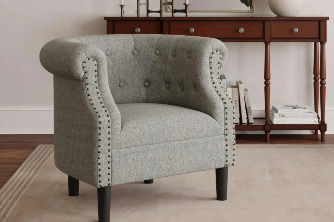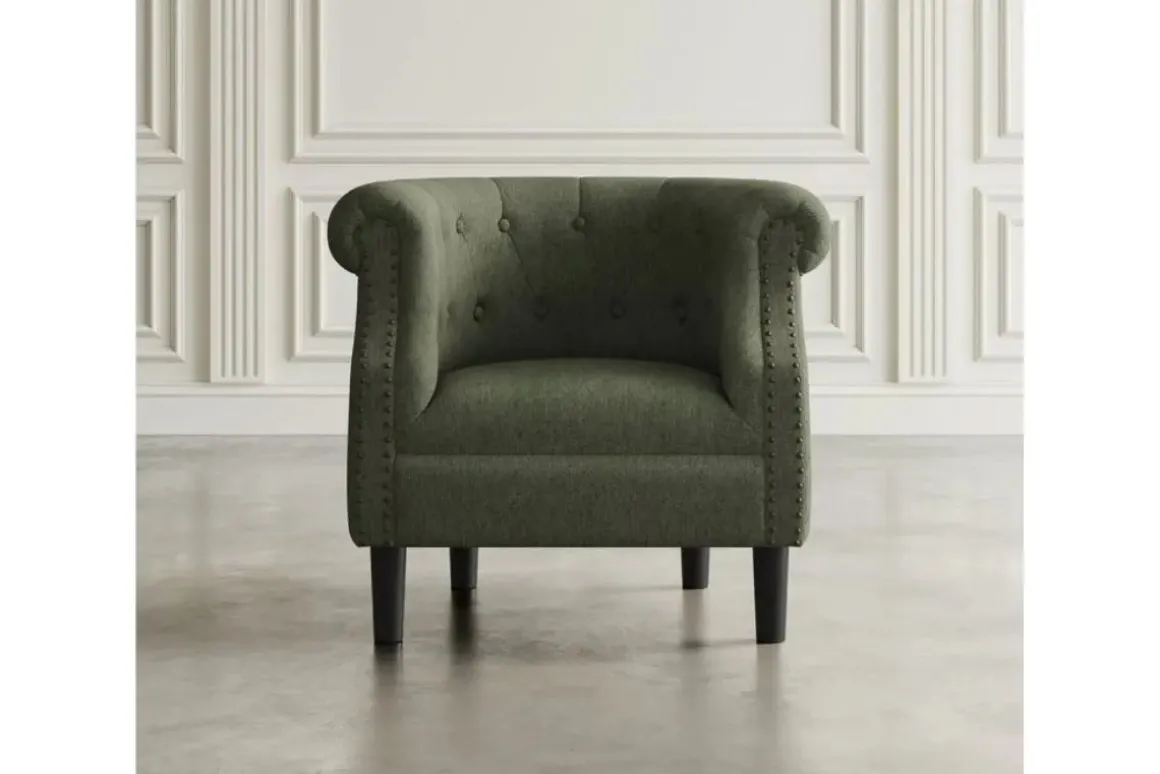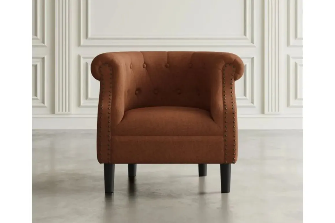 The Lily Accent Chair boasts classic elegance and modern comfort with button-tufting and richly colored upholstery. Sturdy construction ensures long-lasting comfort. Perfect for any stylish living space.