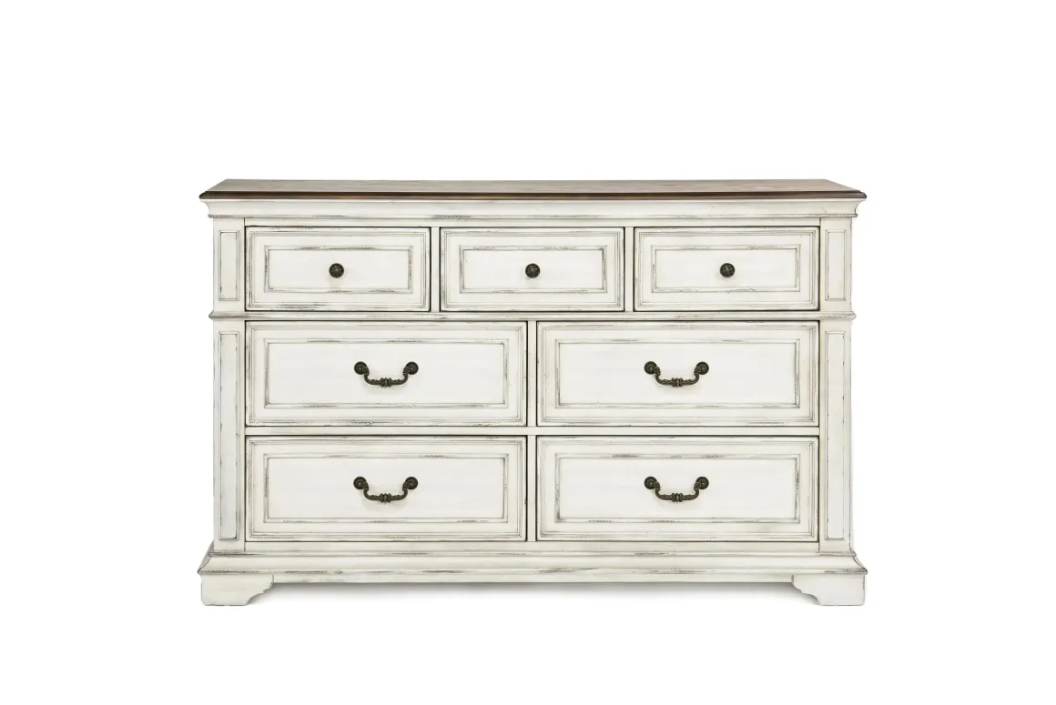 The Anastasia Dresser in White is crafted with elegant touches and premium hardwood solids. With seven drawers of storage space, pair this dresser with the Anastasia Mirror in White for a full and complete look.