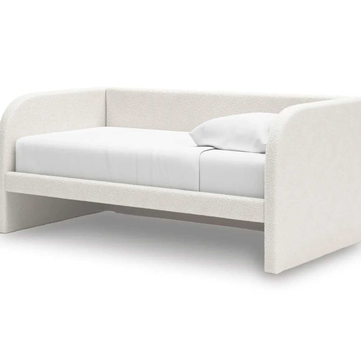 Create a versatile and stylish space with the Arloster Upholstered Daybed in Tan/White, Twin. Perfect for small bedrooms, guest rooms, or multifunctional spaces, this daybed combines clean lines with soft, textured upholstery for a look that’s both modern and inviting. The three-panel backrest and gently curved arms provide supportive comfort for lounging or sleeping, while the neutral tan and white tones blend effortlessly with any decor. Its solid base ensures stability and a sleek, streamlined silhouette, making it an elegant solution for seating and overnight stays.