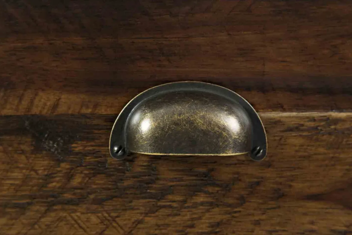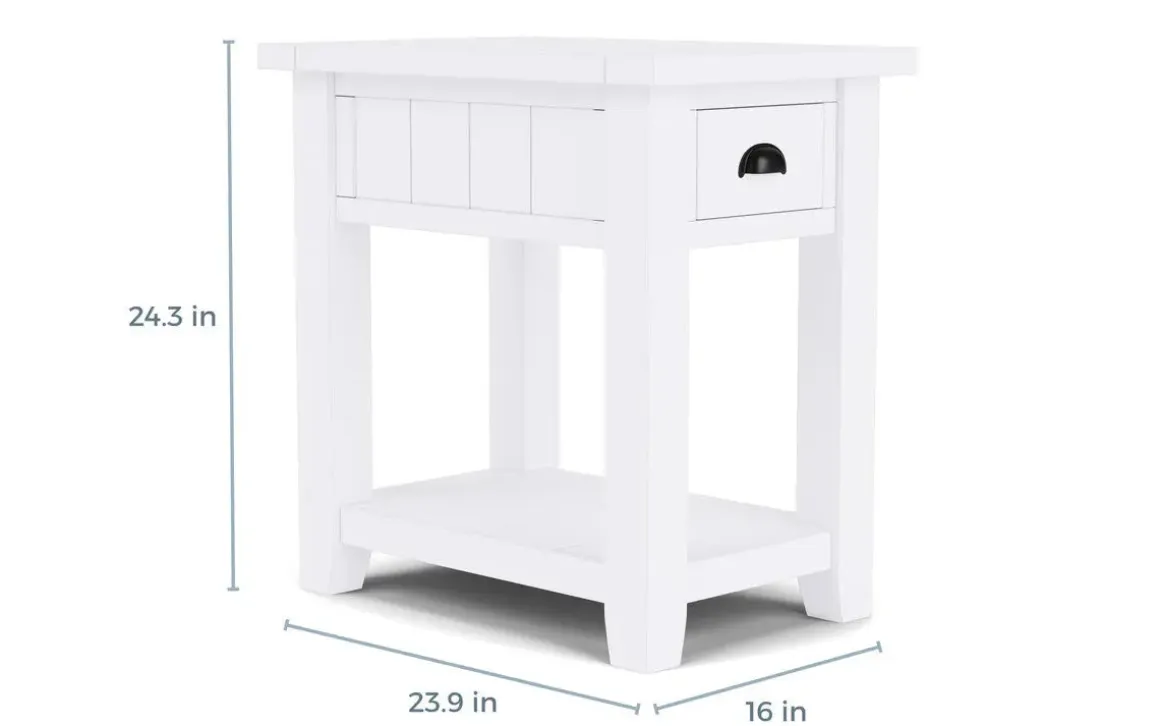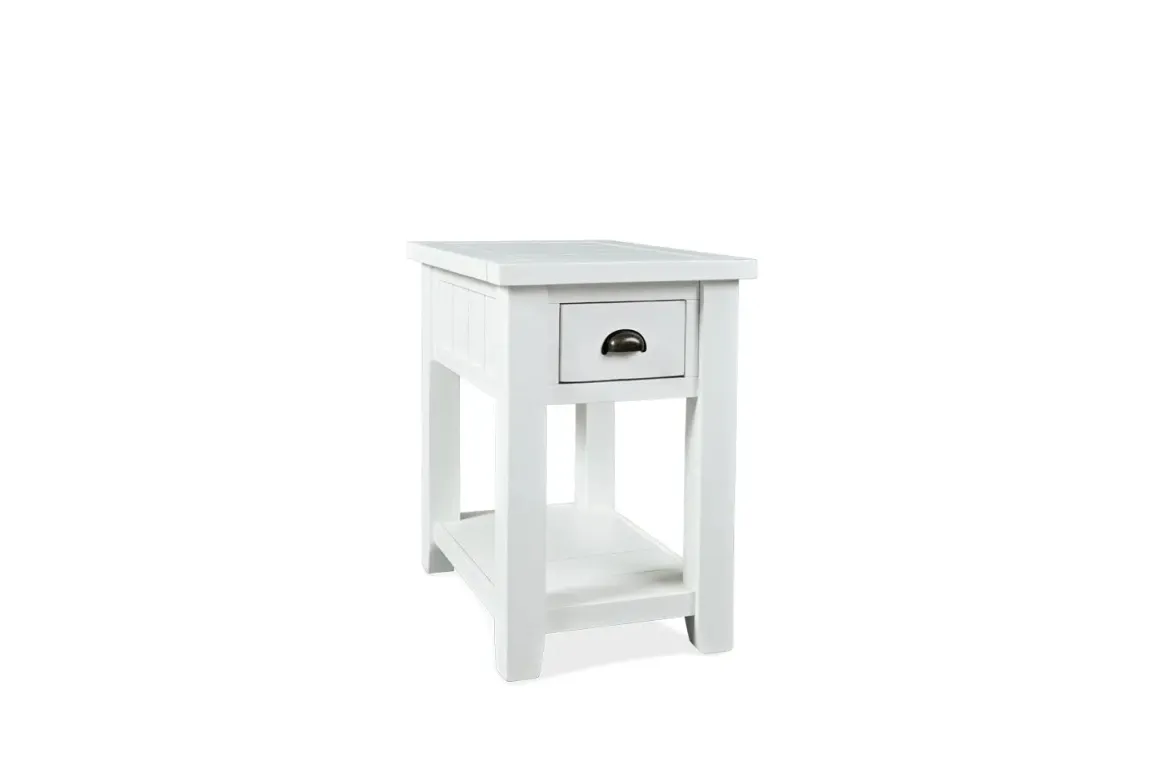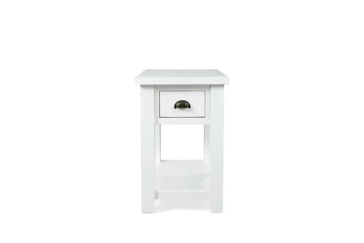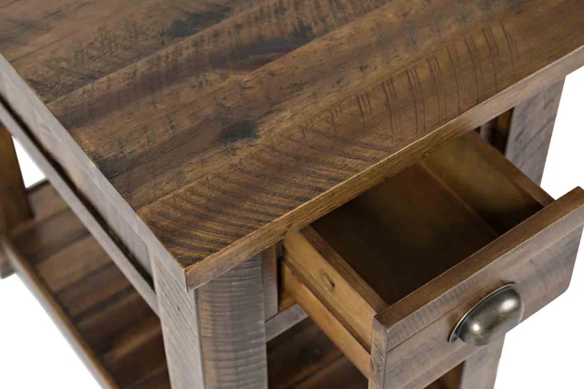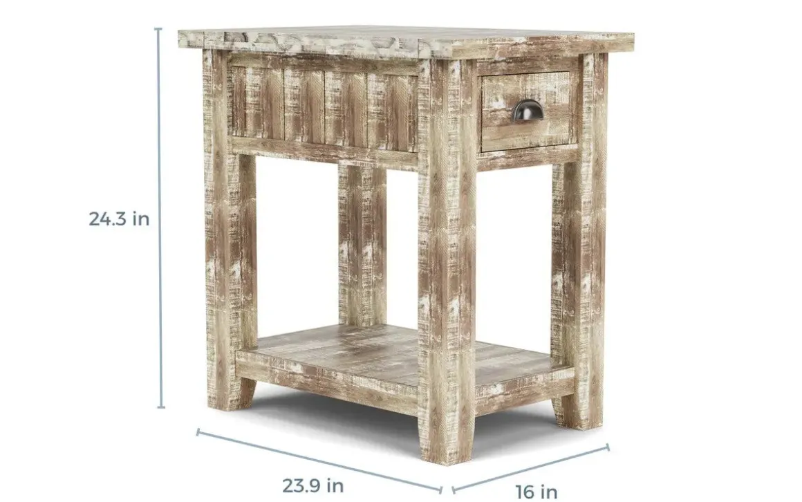 The Artisans Chairside Table in Gray pairs clean lines with distressed wood and vintage-style hardware for modern rustic appeal. Its petite frame makes it the perfect stage for a book and cup of coffee.