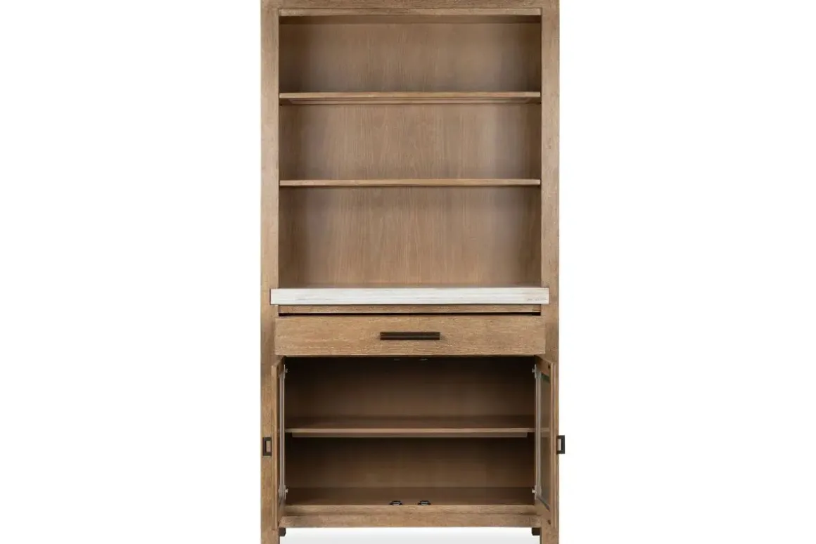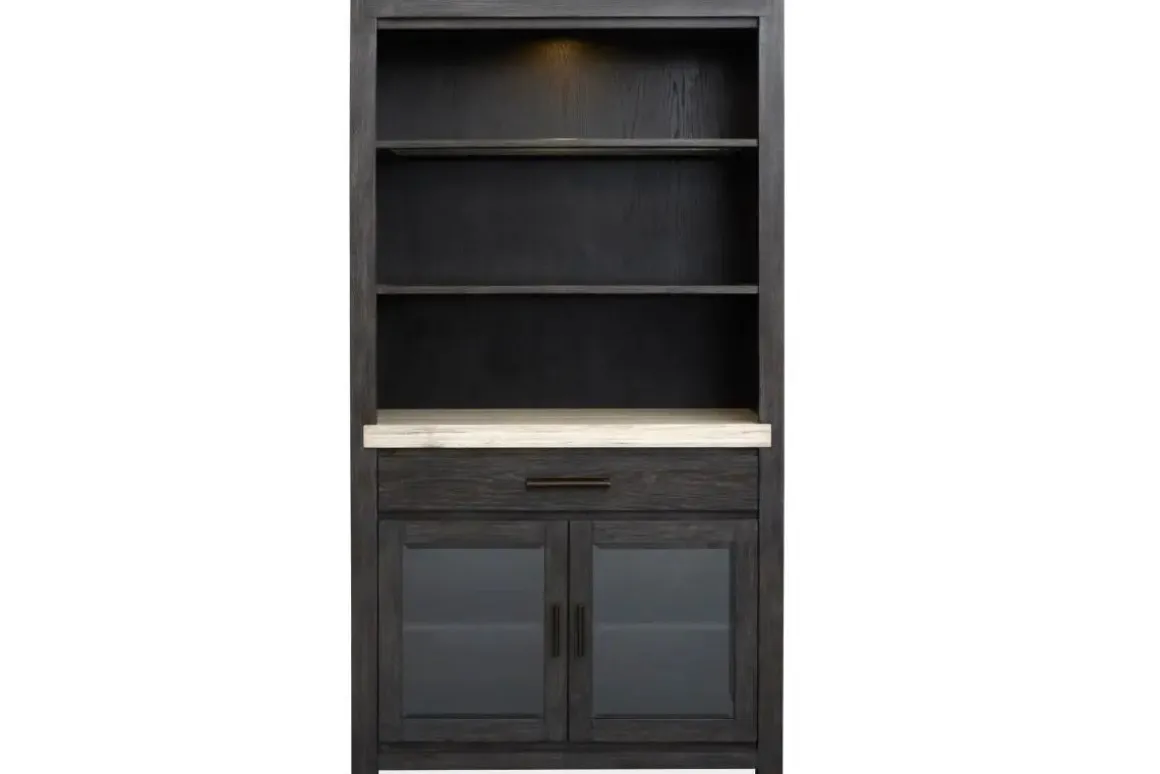 The Aspen Collection brings a serene, seasonless style to your dining room, combining natural beauty with subtle sophistication. Finished in a soft Ravenwood Black, complemented by Oil Rubbed Bronze hardware, the collection blends Random Cathedral and Slip/Flip White Oak Veneer, hardwood solids, stone, and fabric for a warm, inviting look. The feature smooth lines and gentle curves, while the notched stone detailing adds an element of texture and interest. The Aspen Valley Collection brings timeless charm to any home, offering a perfect balance of understated elegance and effortless warmth.