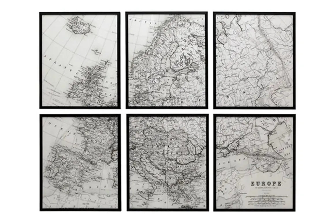Using maps as wall art is nothing new. However, the Avanworth Wall Art, Set of 6 takes a different perspective by presenting a map of Europe in framed blocks. Place them together to illustrate the full map, hang them to decorate other parts of one room; or hang them alone in multiple areas.Product Details:• Acrylic Front• Black and image• Detailed topographical map of Europe• Black framesDimensions:• 24”W x 1.18”D x 28”H