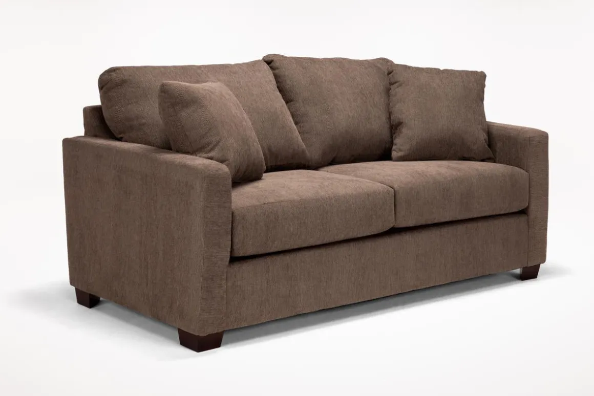 • Warm mushroom-brown upholstery brings a grounding, welcoming warmth to your space