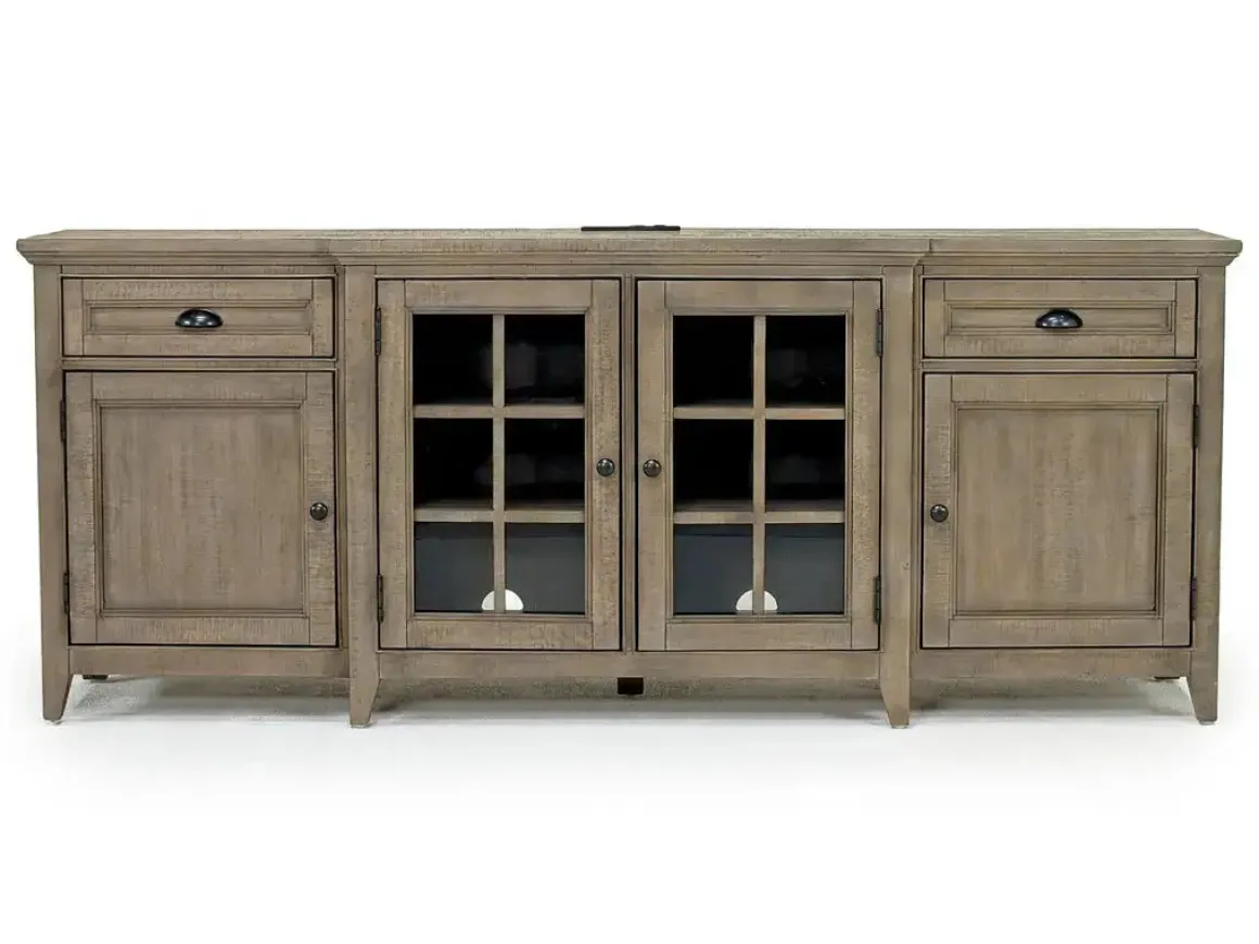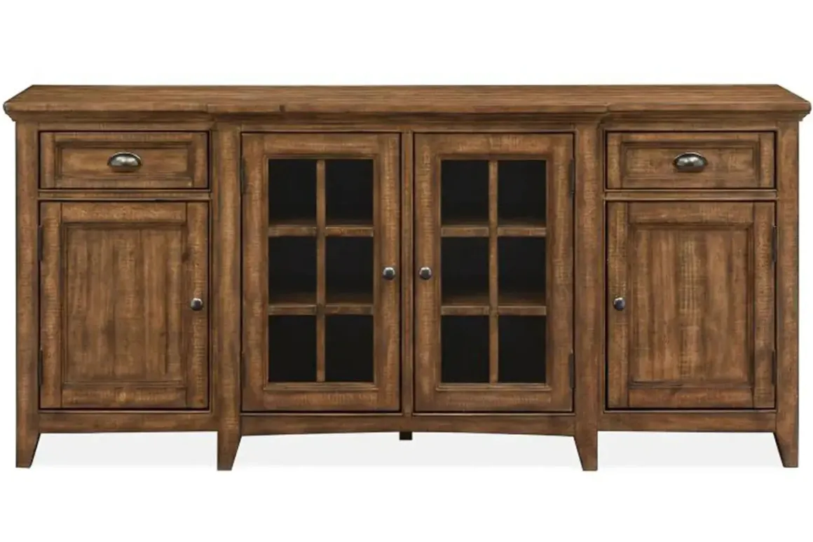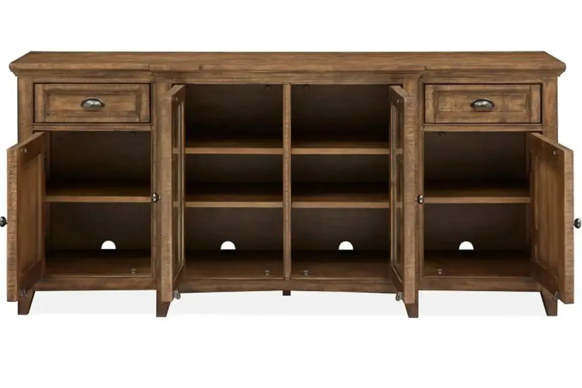 Designed for transitional and more modern spaces, the Bay Creek Media Console in Nutmeg with USB Charger, 70 Inch is the perfect pick for your living room or family room. Featuring a neutral design and an assortment of drawers, doors and shelves, Bay Creek is ideal for storing audio-video essentials, books and all of the other necessary equipment in your home.
