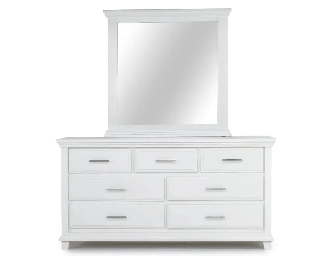 No bedroom is complete before you bring in a mirror to help you check your look on the way out the door. Of course, a mirror is more than a way to check for spinach in your teeth; like the Bella Mirror in White, which can also open up a small room and make any space feel more elegant. This mirror attaches to its coordinating dresser. Additional hardware may be needed for wall installation. Product Details: • Wood frame is made from pine and MDF • Easy to hang mirror goes up on your wall in seconds • Pairs perfectly with the Bella Dresser in WhiteDimensions: • 41.25 W x 3.250 D x 41.25 H