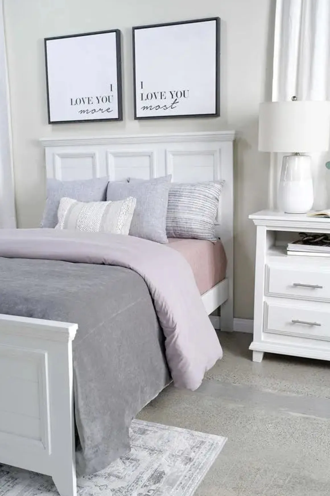 • The bed features a soft stone-white finish that adds brightness and charm to smaller spaces.