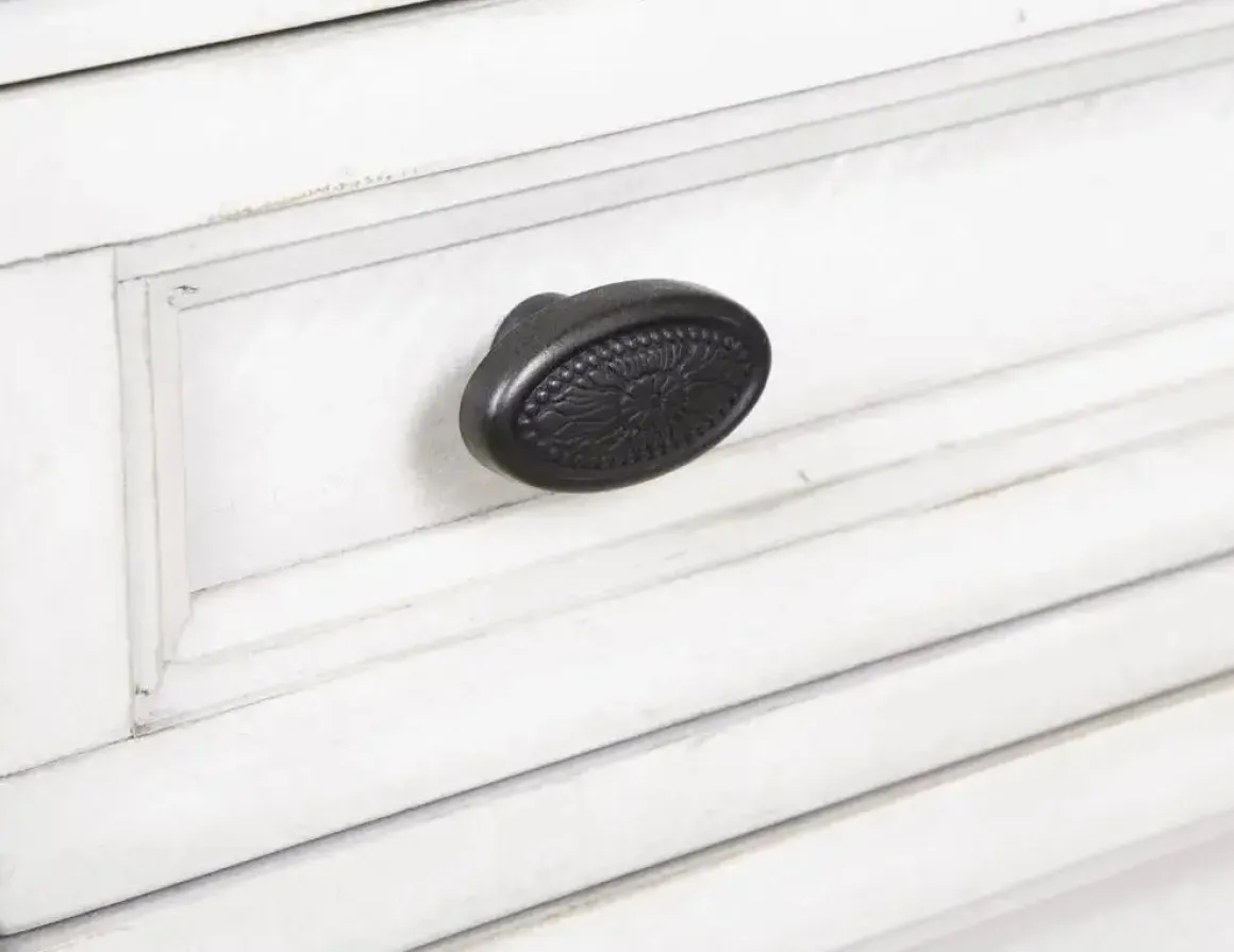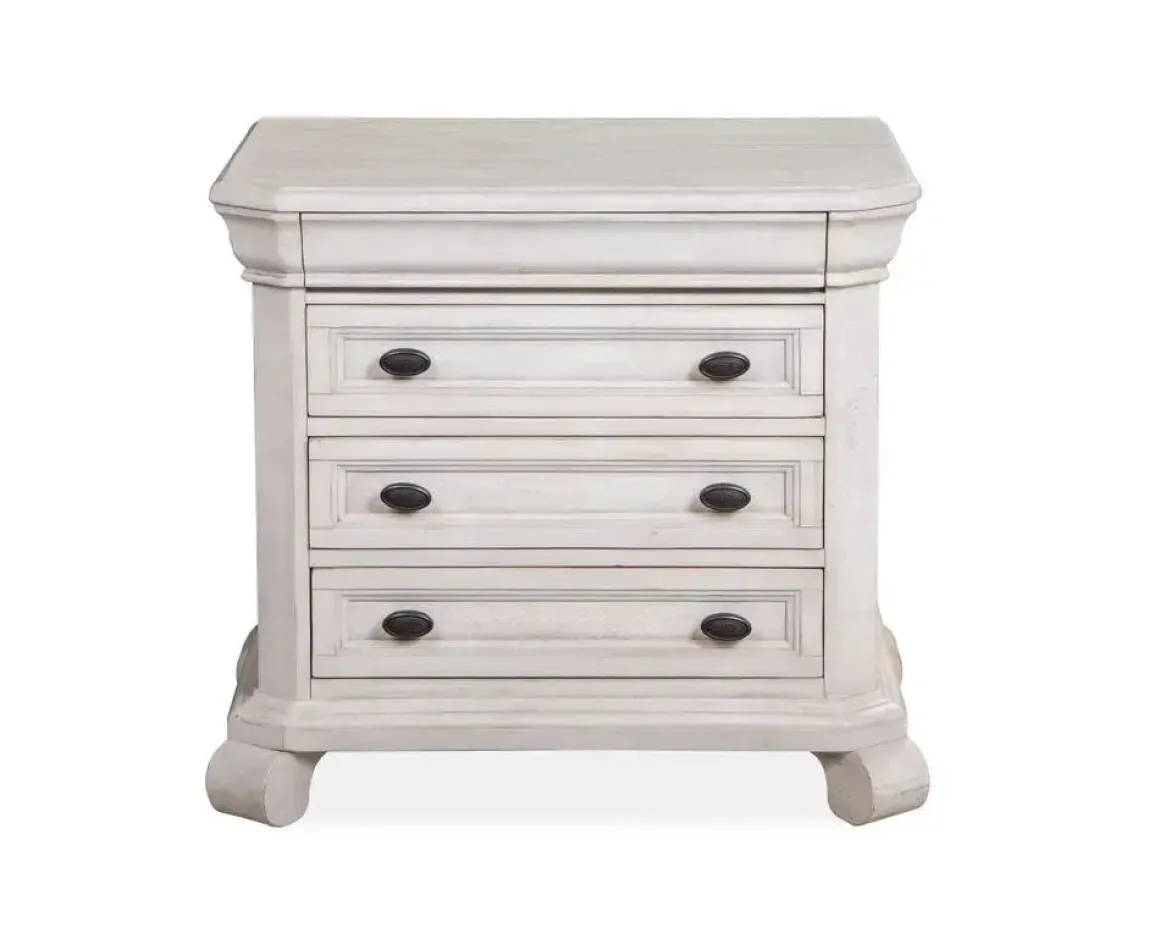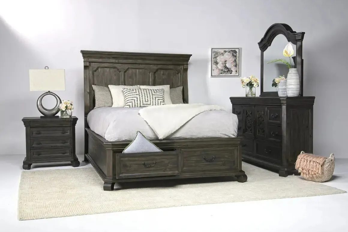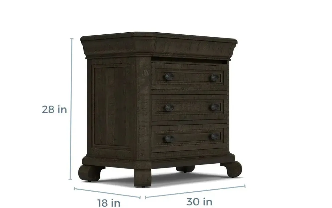 Charming and built with artisanal qualities this nightstand maximizes storage space and brings a pastoral feel to the bedroom. The fine wood grain visible in the Bellamy Nightstand in Charcoal speaks of quality and craftsmanship. It includes four drawers and has plenty of floor clearance space for easy cleaning.